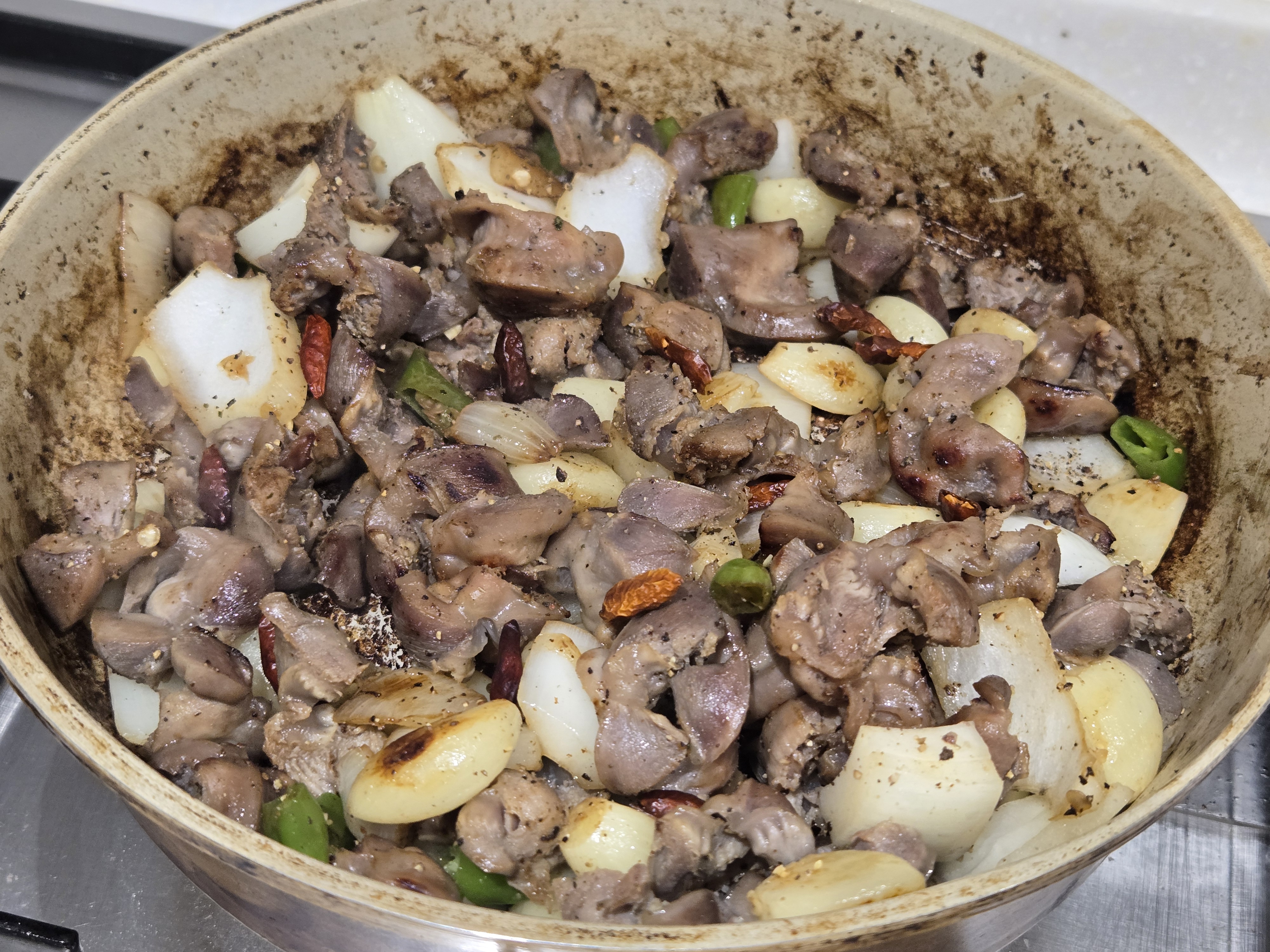 본격적으로 닭똥집을 볶는 과정으로