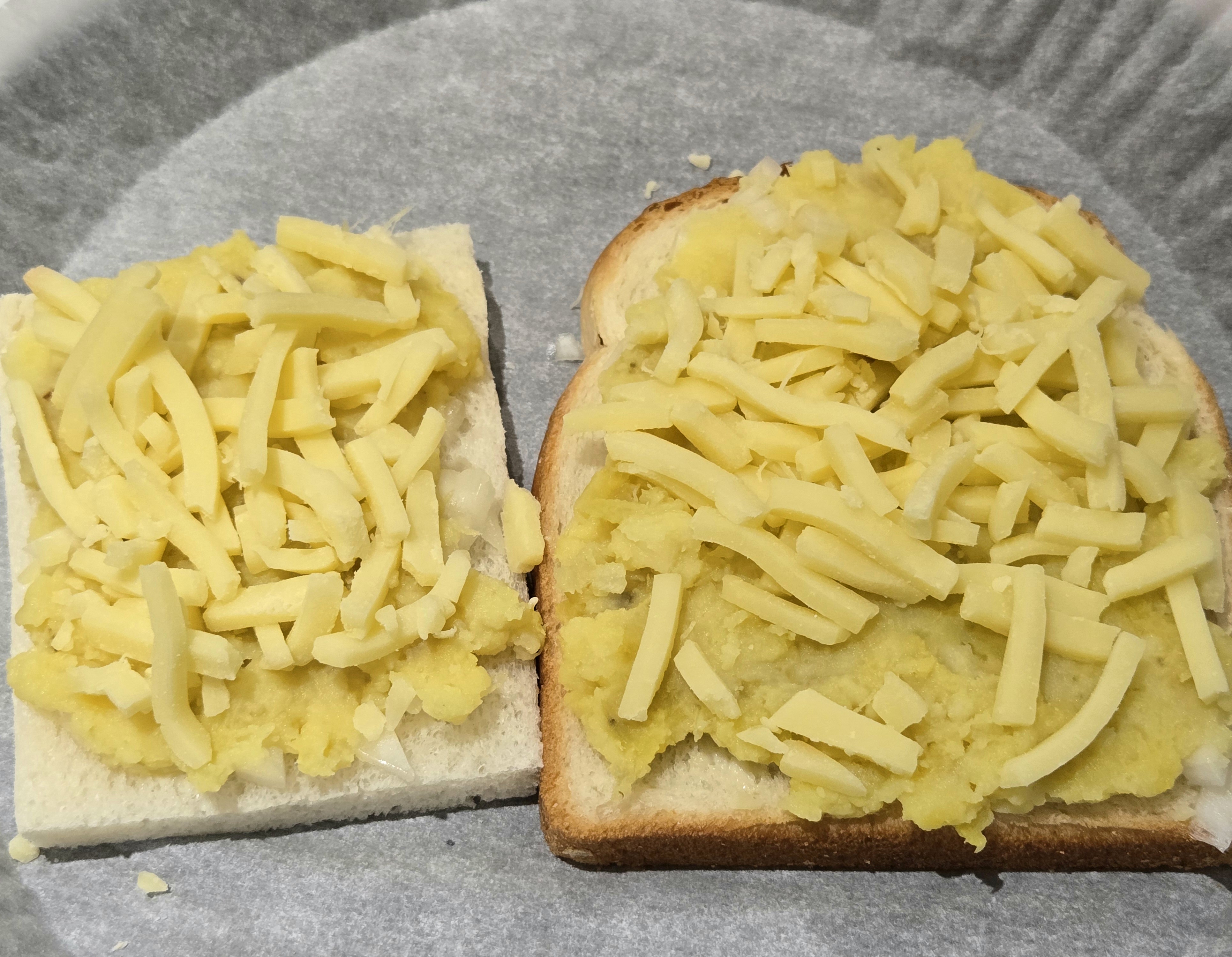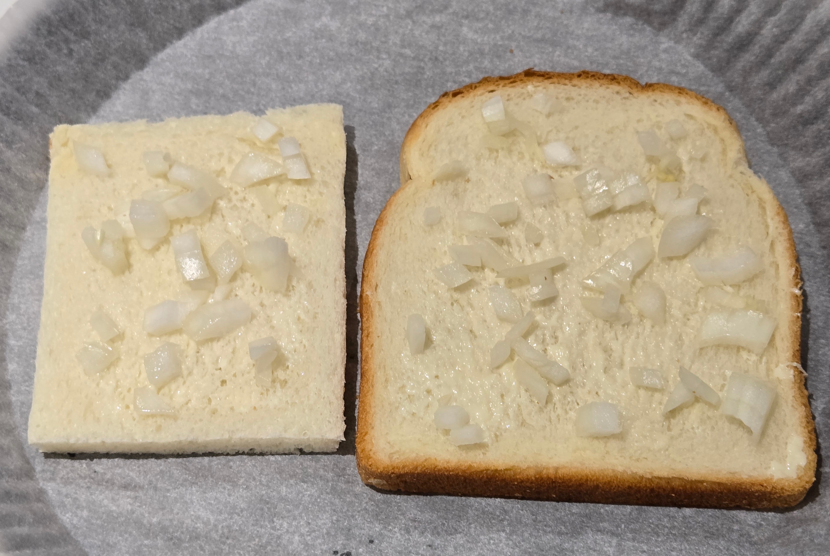 잘게 썬 양파를 식빵 위에 올리세요!