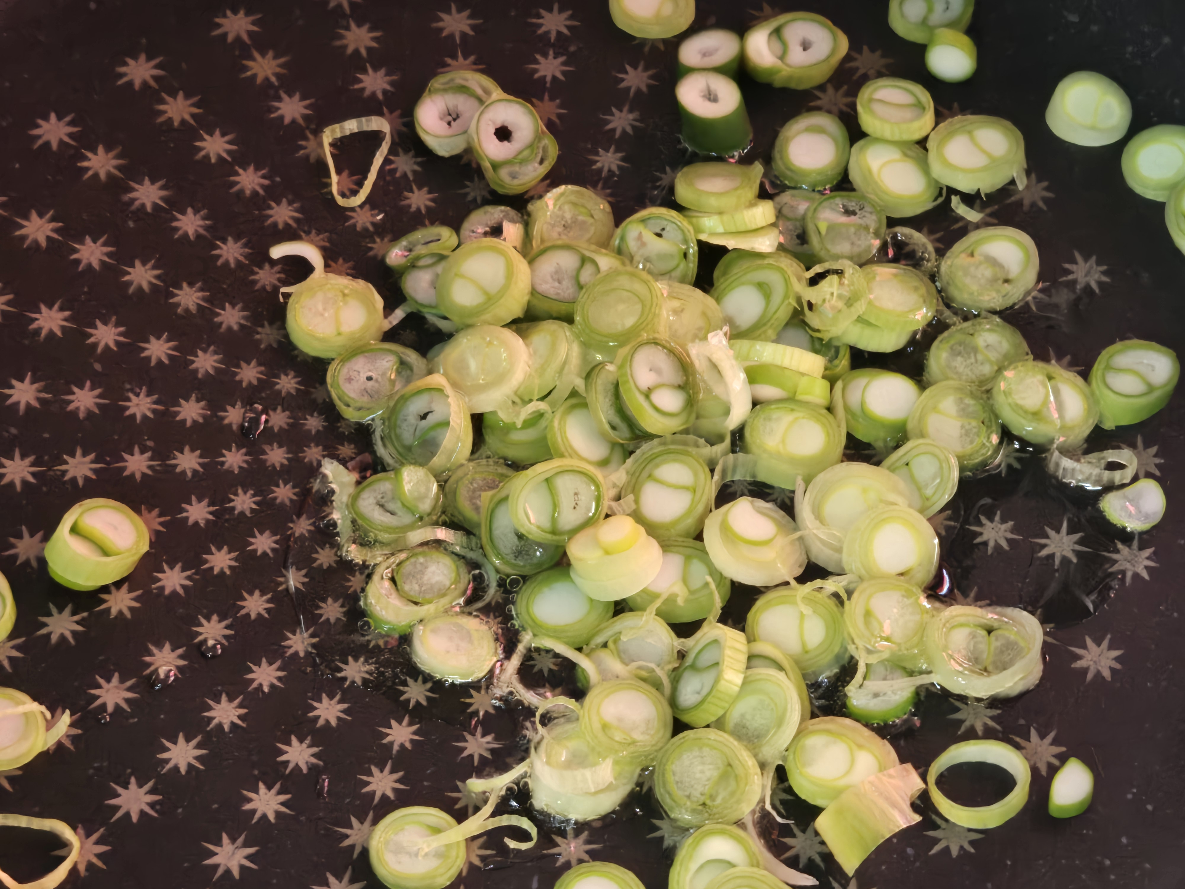 잘 썰어준 파를 강불에 달군 팬에 넣고