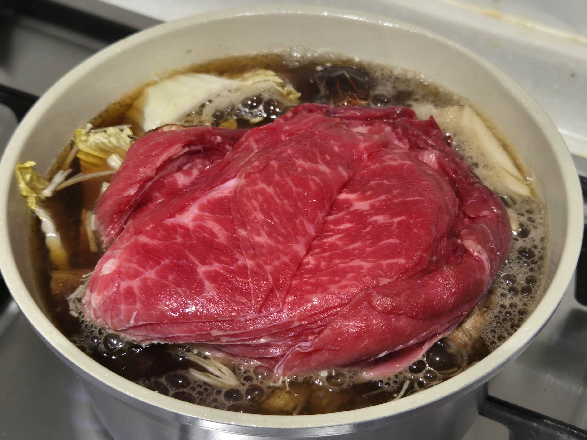 이제 스끼야끼 양념장을 넣어주시면 됩니다