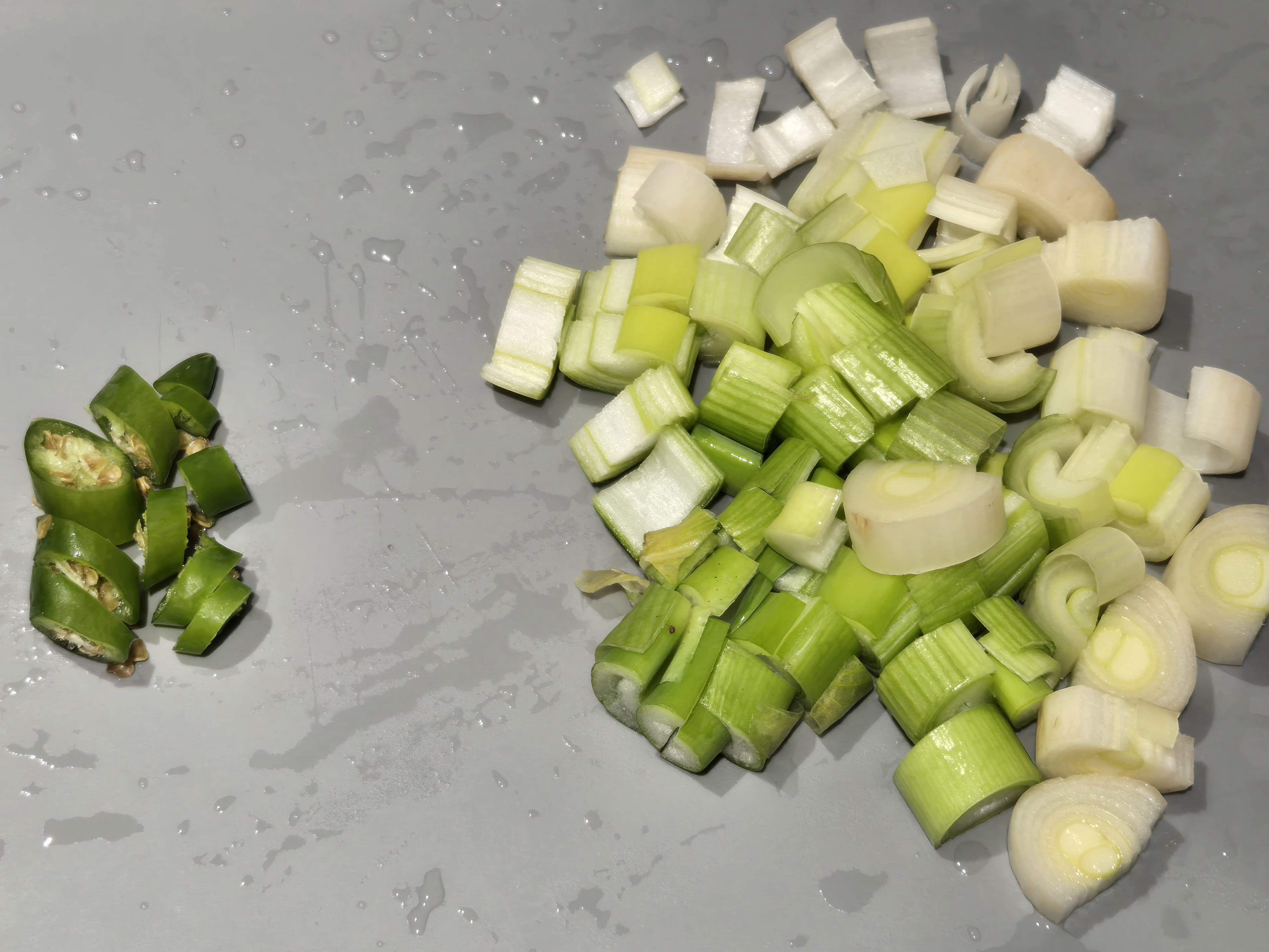 1-2. 청양고추 1개, 대파반단 썰어준다