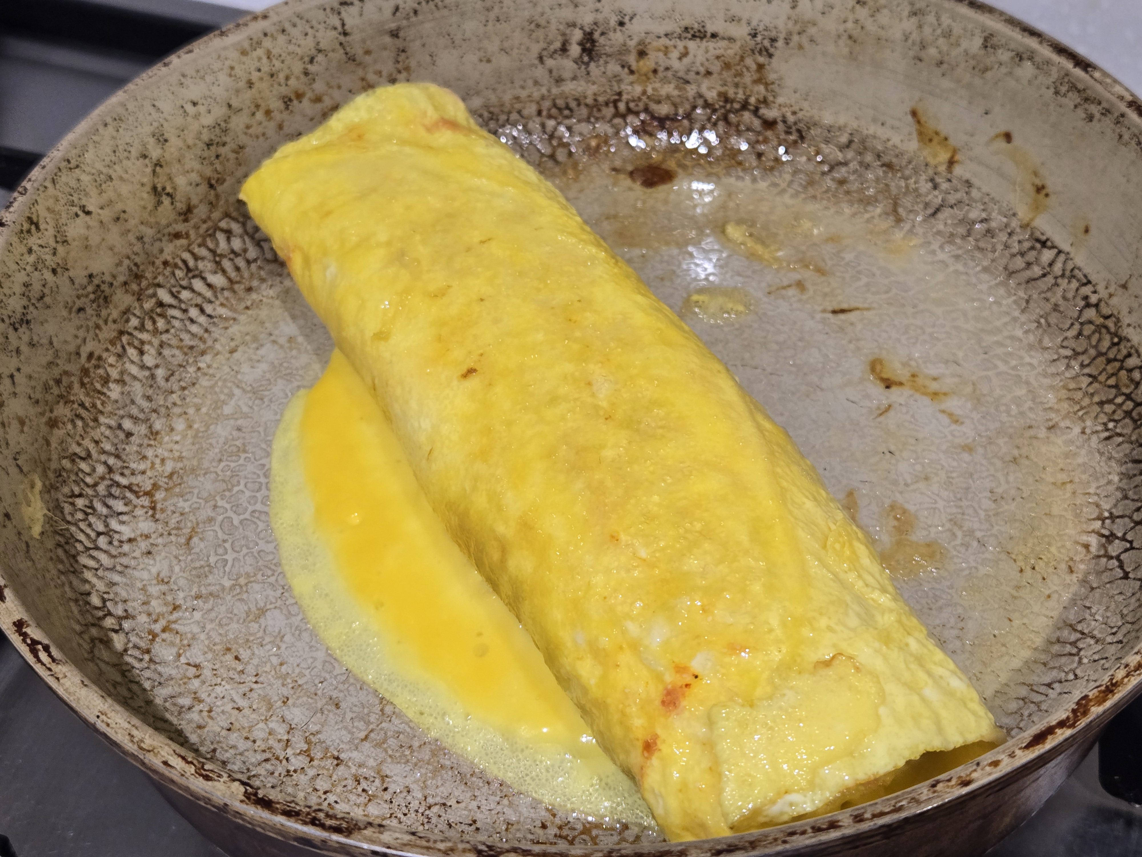 2️⃣ 기름 둘러 팬에 계란물을 올린다
