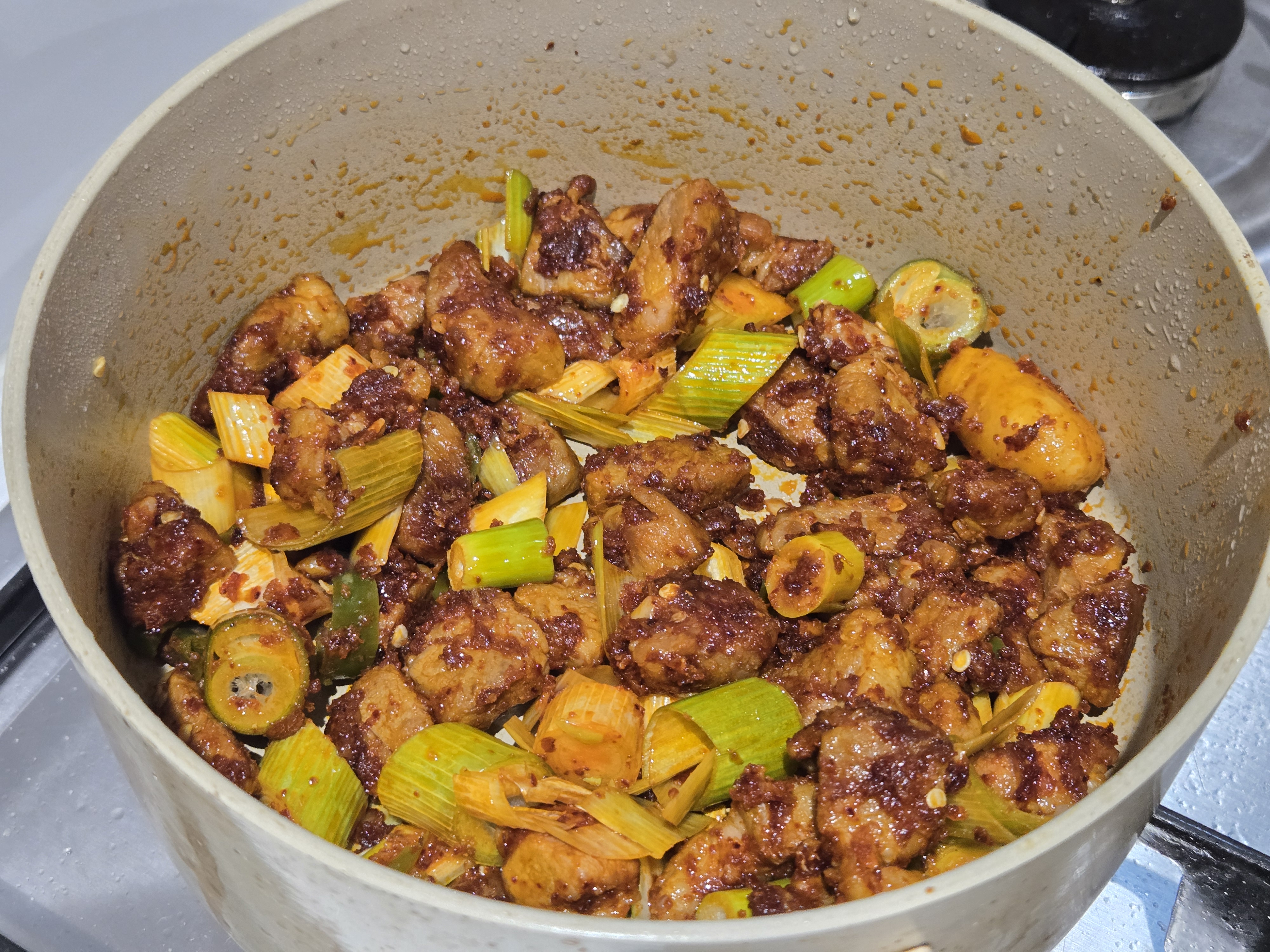 안녕하세요! 감자짜글이 레시피는설탕, 고춧가루, 간장,된장, 고추장, 다진마늘 이렇게만 양념장이 필요해서여타 가정집에 있을 법한 재료들로만 만들어누구나 접근하기 쉬운 요리라 생각됩니