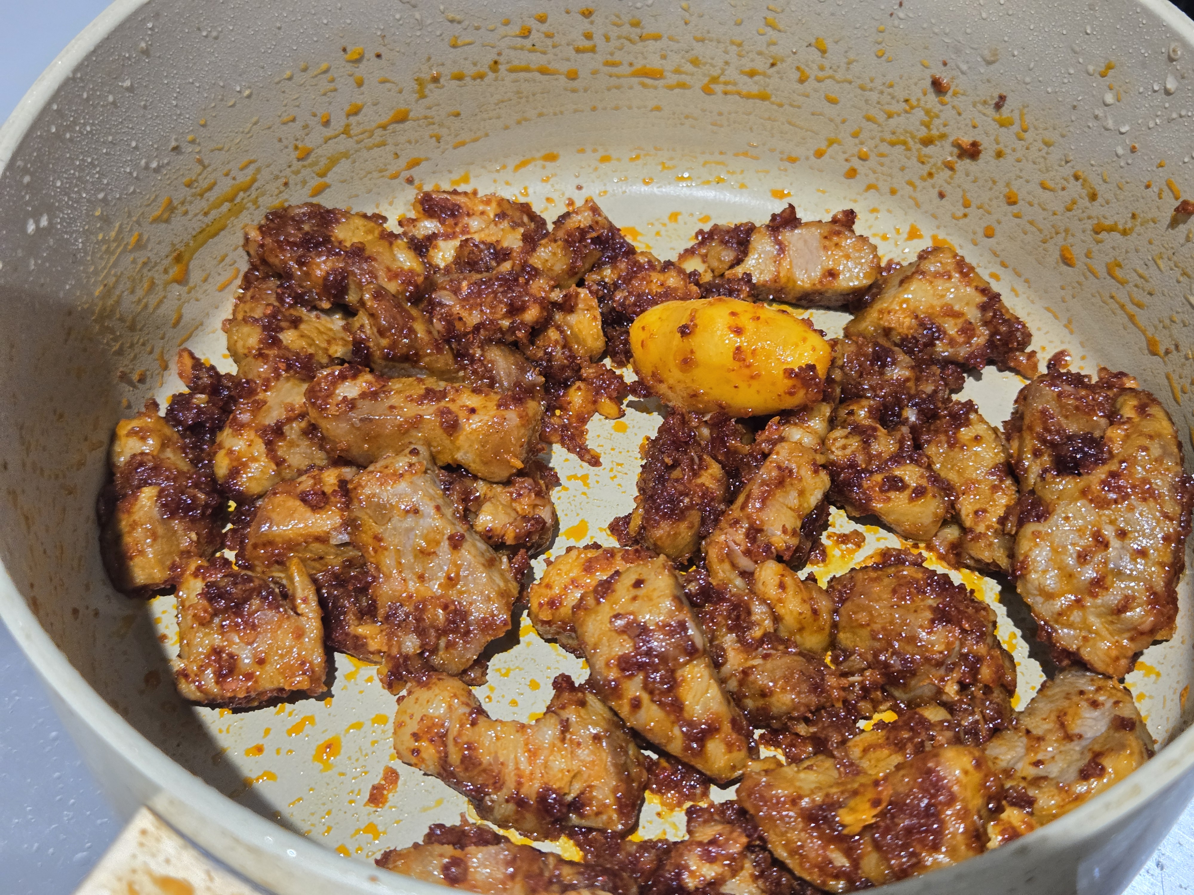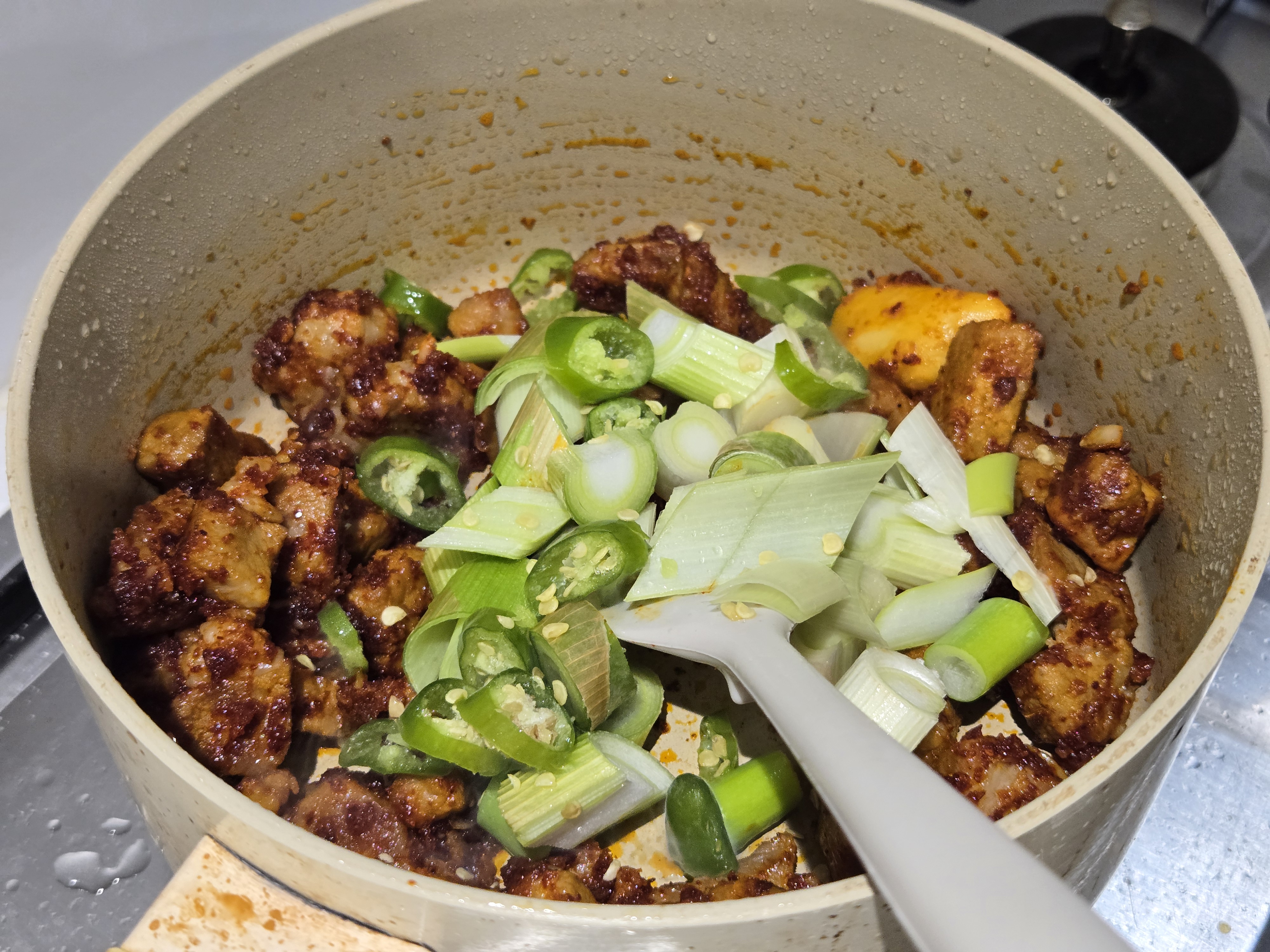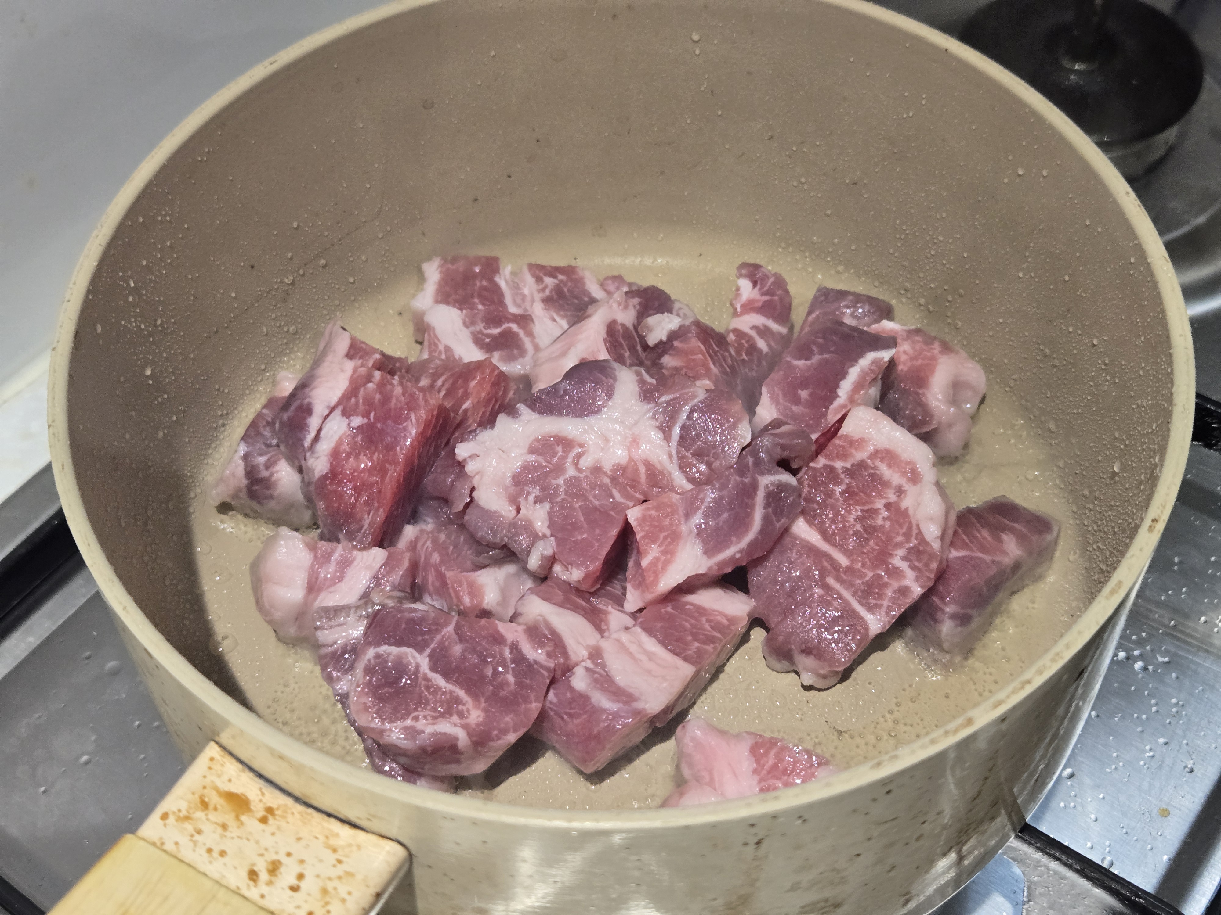 냄비에 고기가 들러붙지 않게 하려고