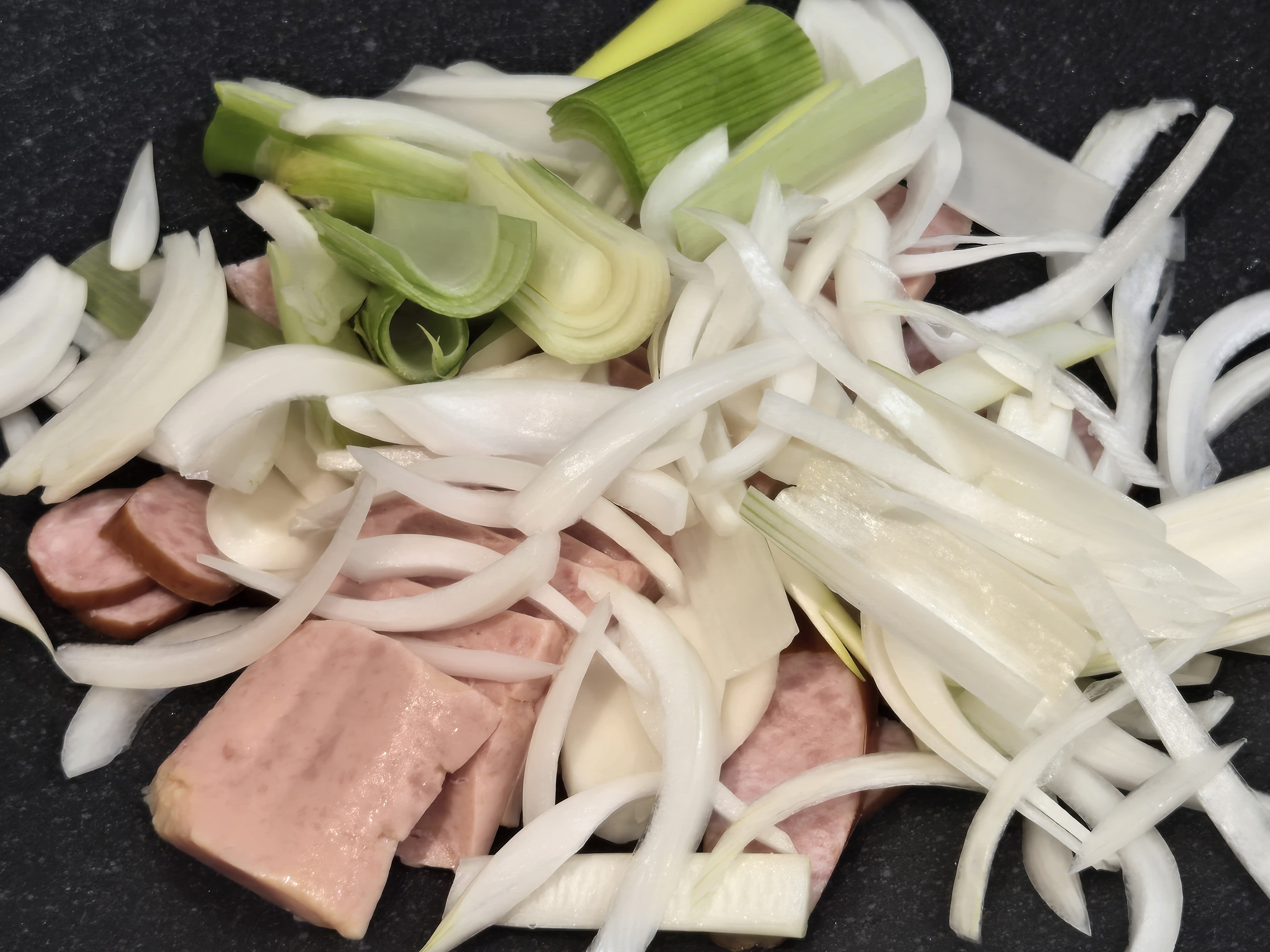 (얇게 썰어줄수록 햄 육수가 잘 나와요)