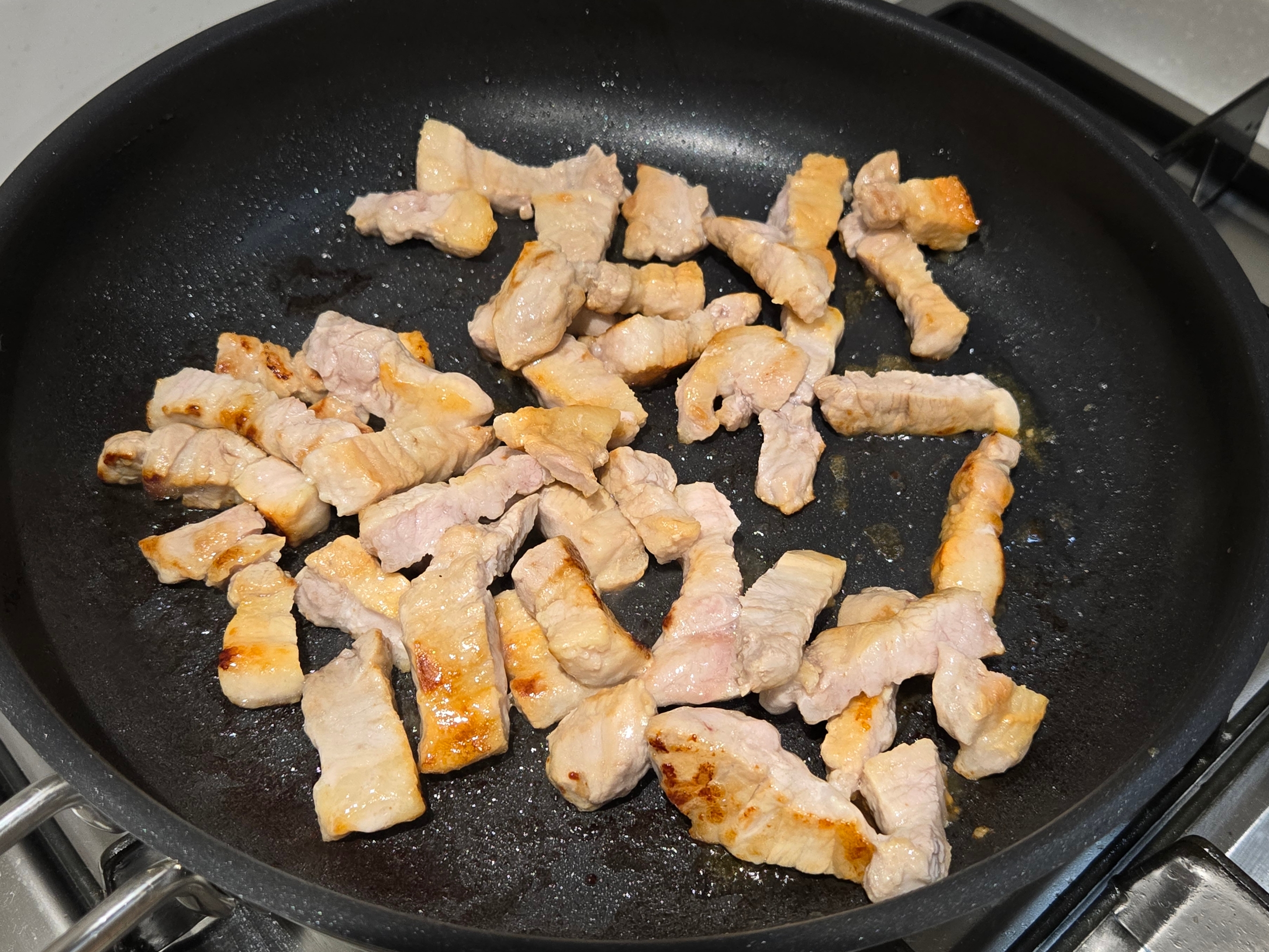 팬에 삼겹살 300g을 잘라 중불로 구워주세요!