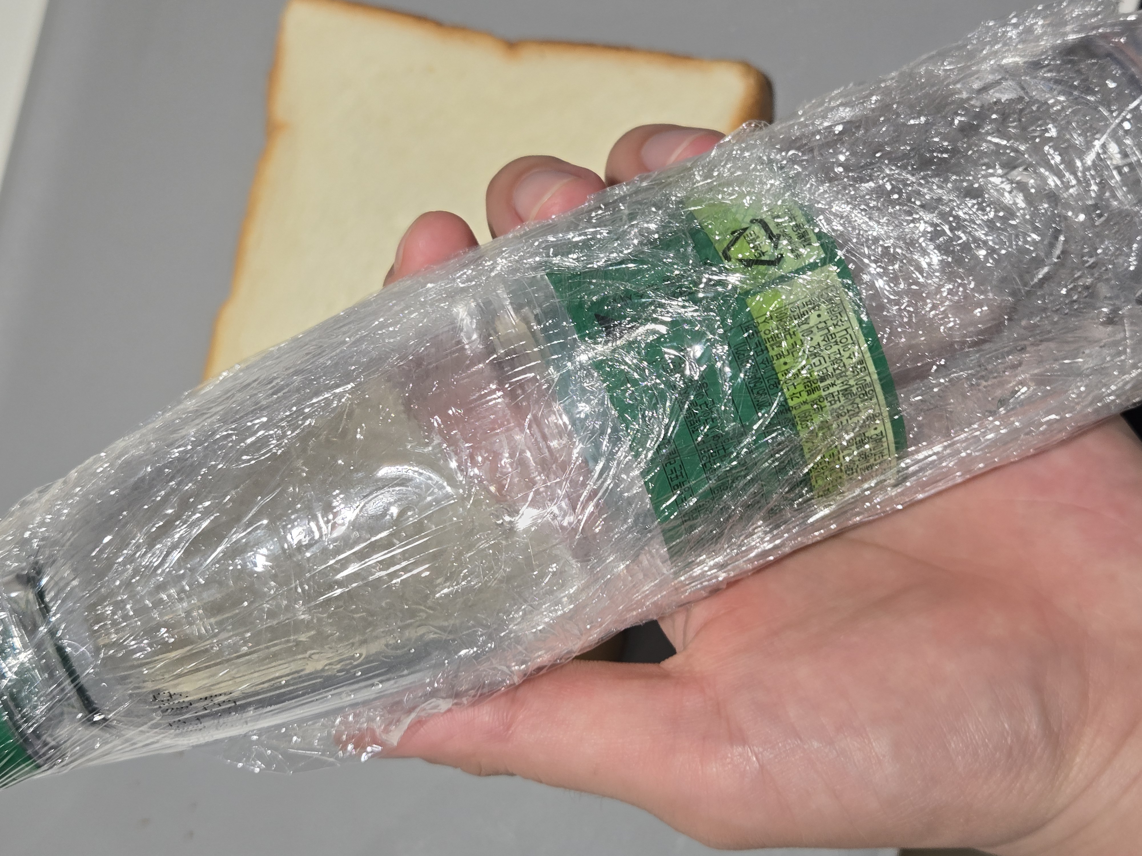 페트병에 랩 둘러 밀어주세요