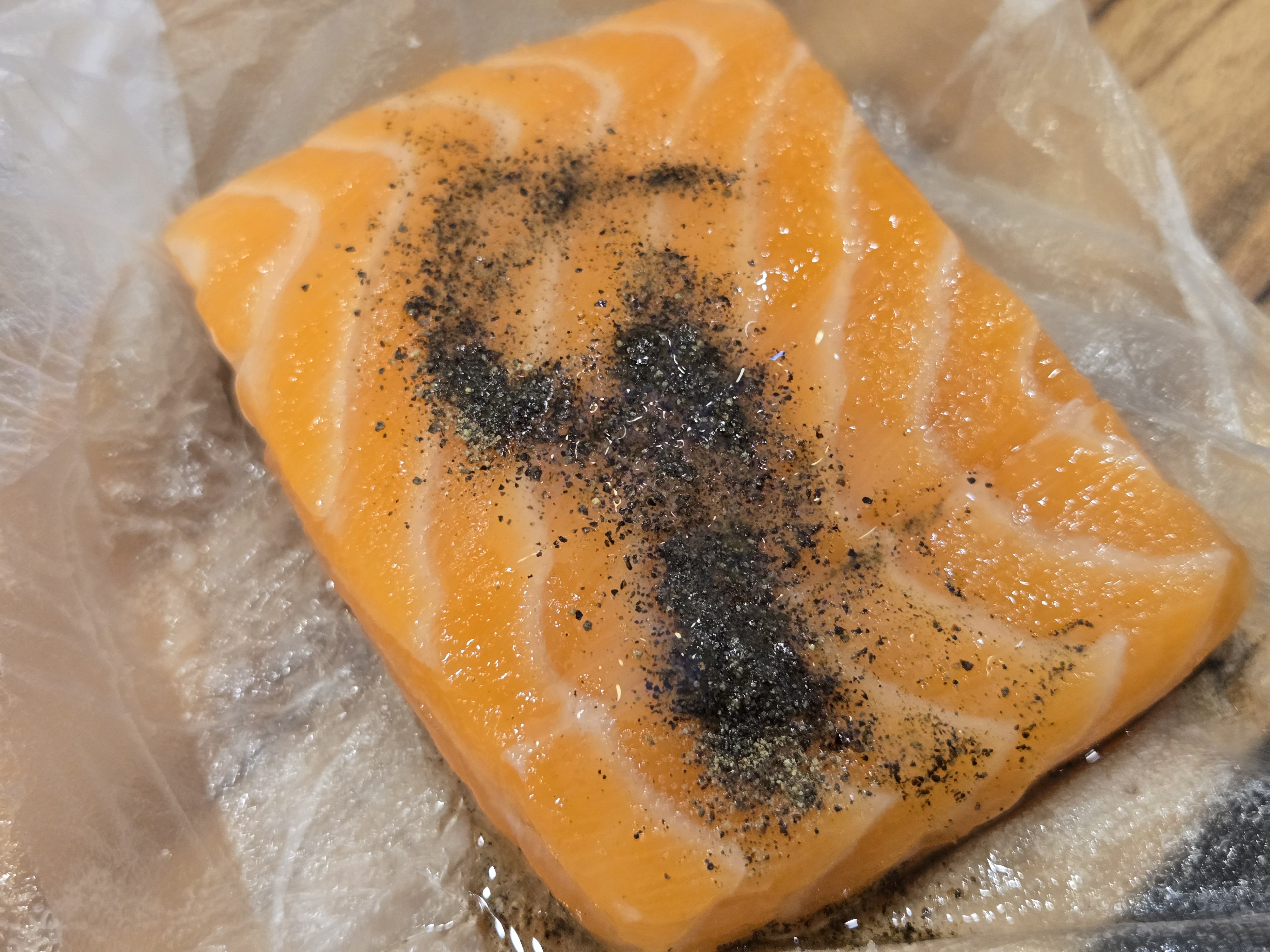 올리브유 묻혀서 연어를 마리네이드 해주세요