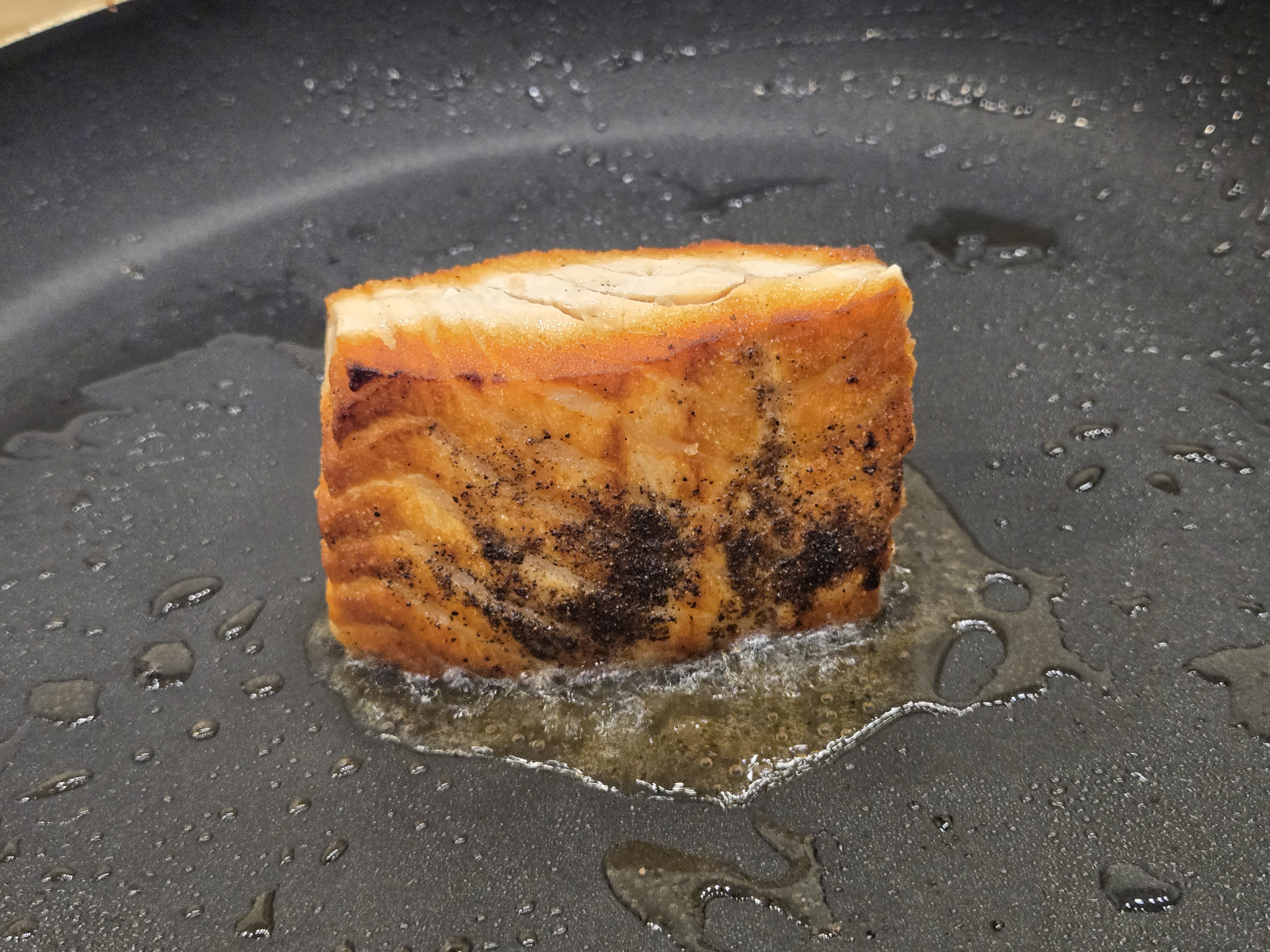 연어의 각 면이 노릇노릇 잘 구워졌다면,