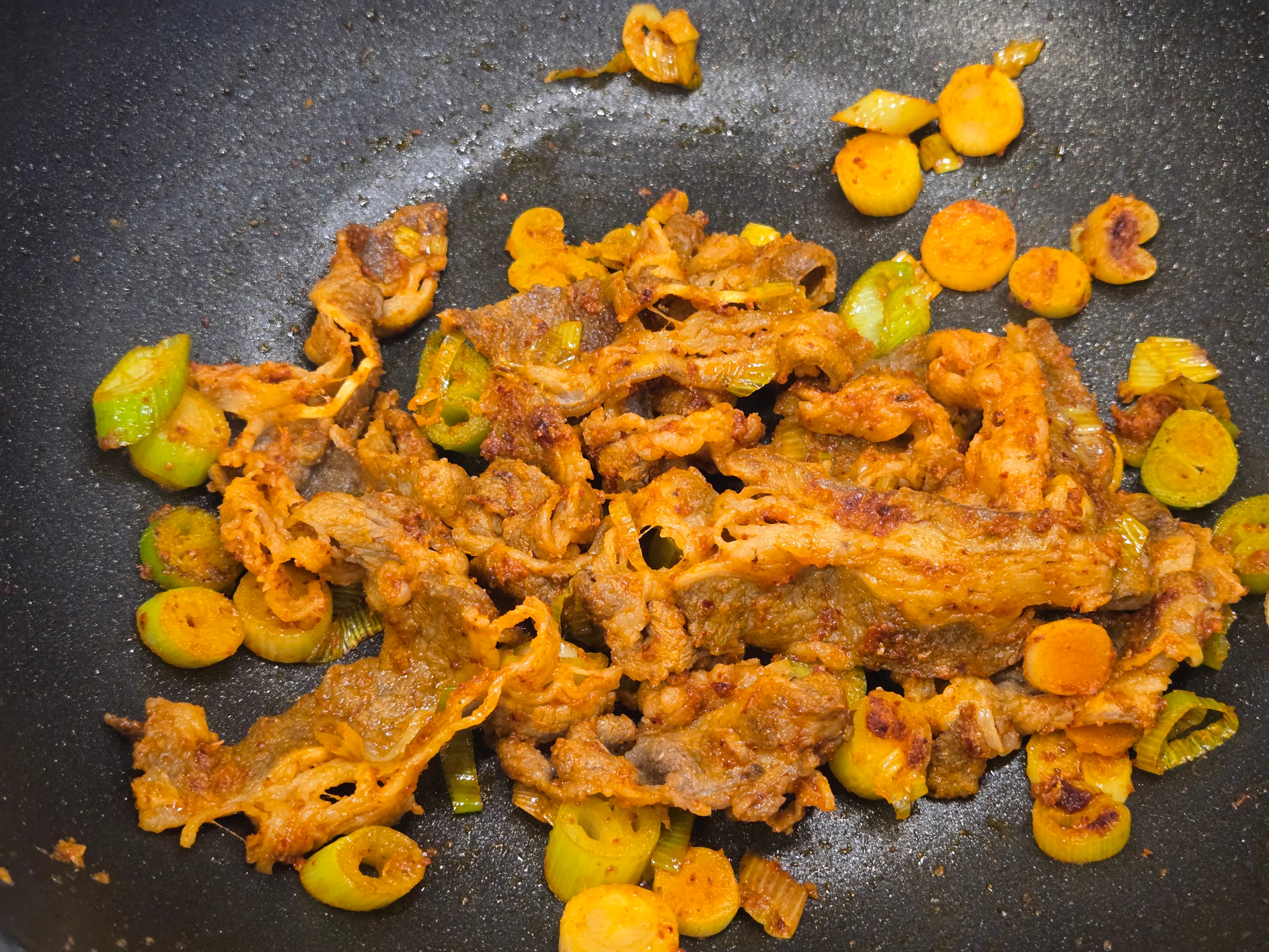 이렇게 우삼겹에 고춧가루 색깔이 예쁘게 묻어나면