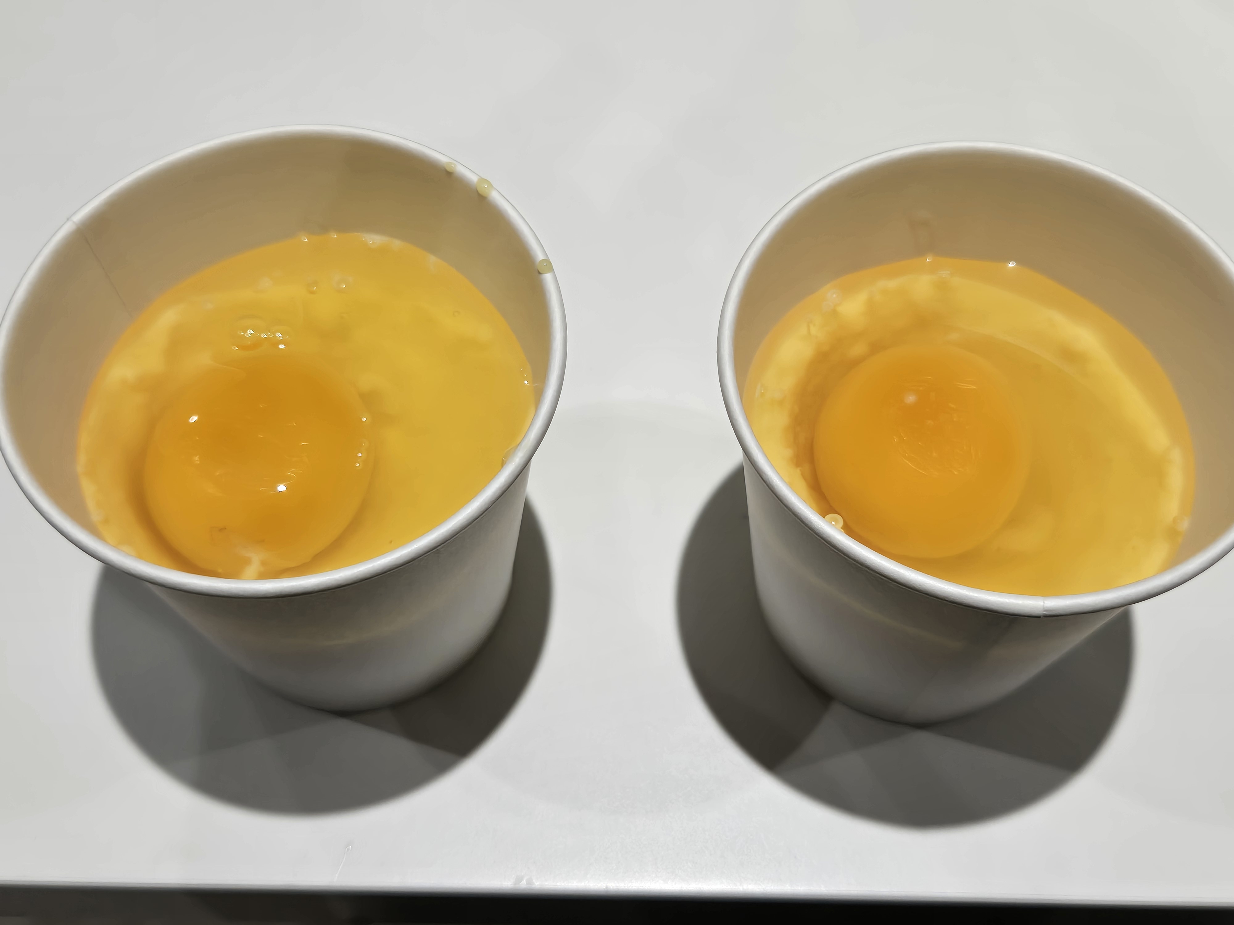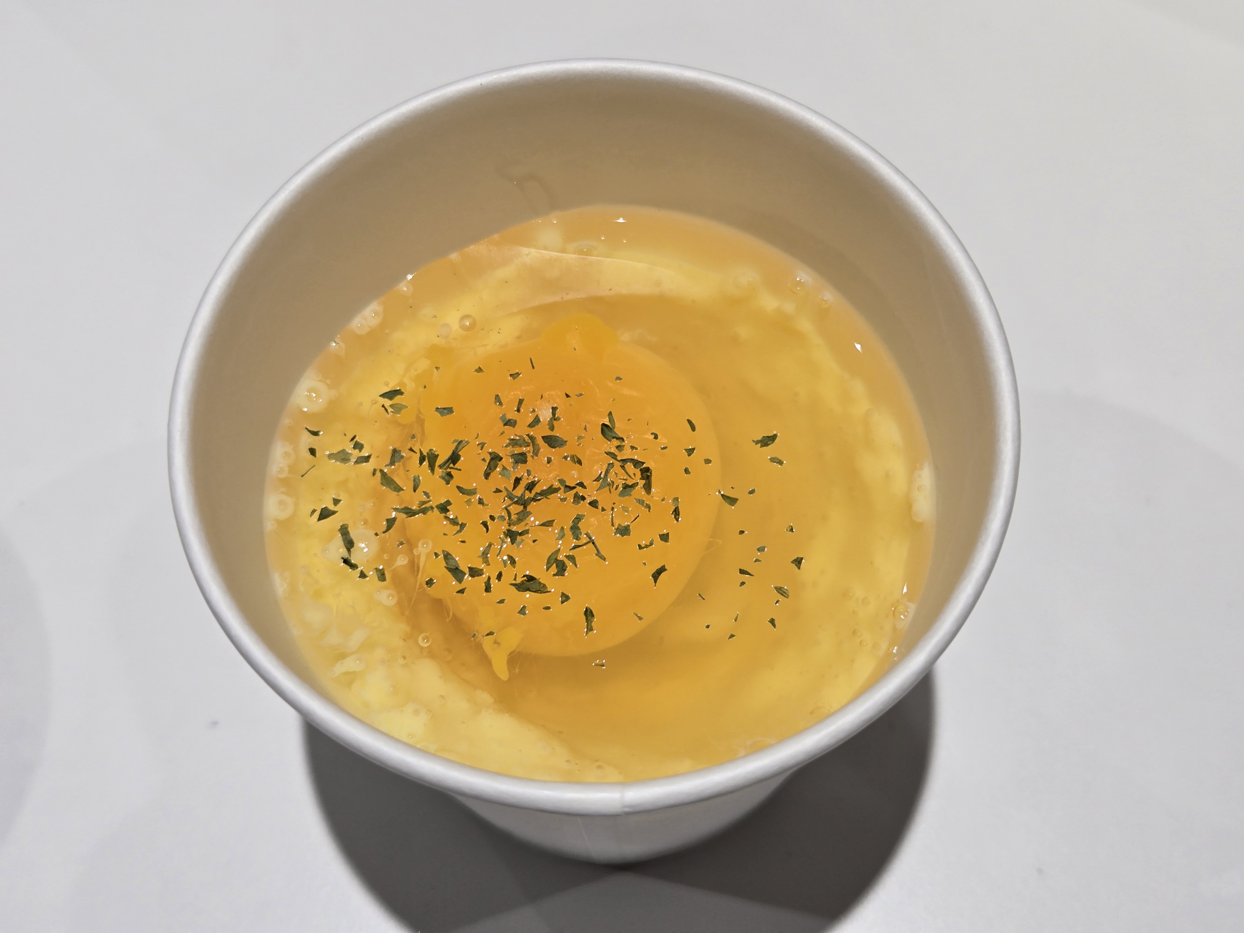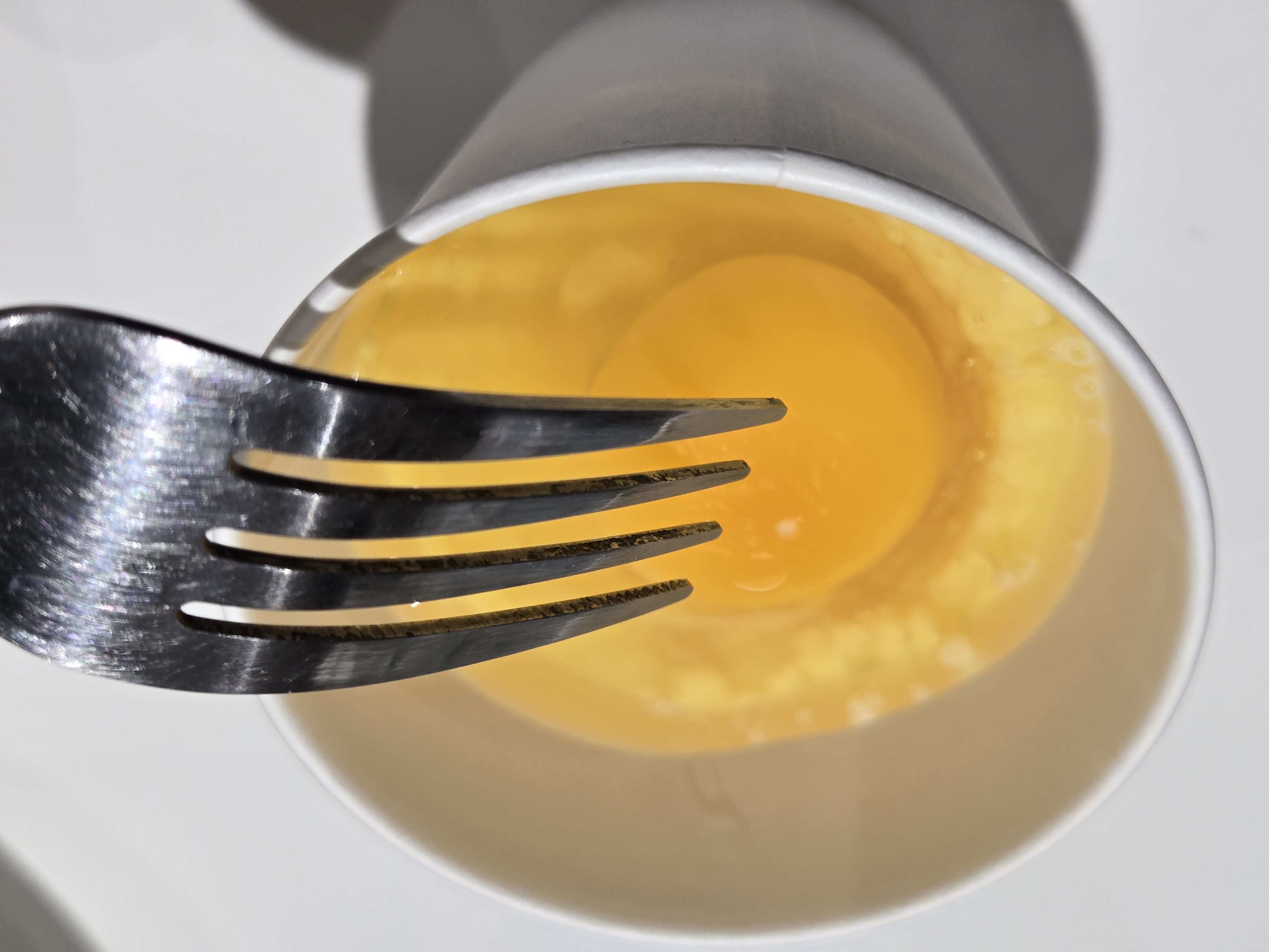 노른자를 젓가락으로 꼭 터뜨려 주세요!