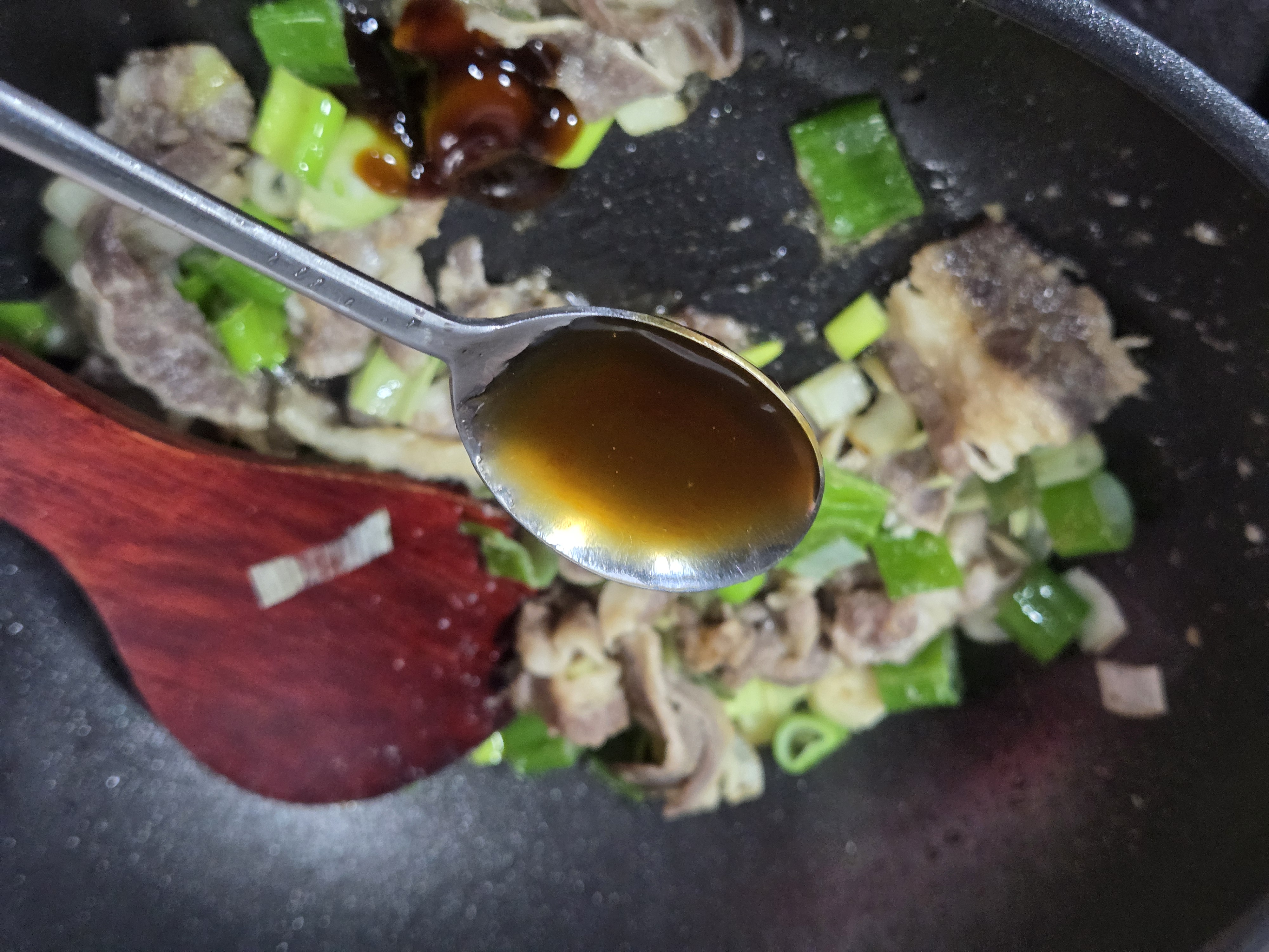 굴소스 2스푼과 멸치액젓 1스푼 넣어