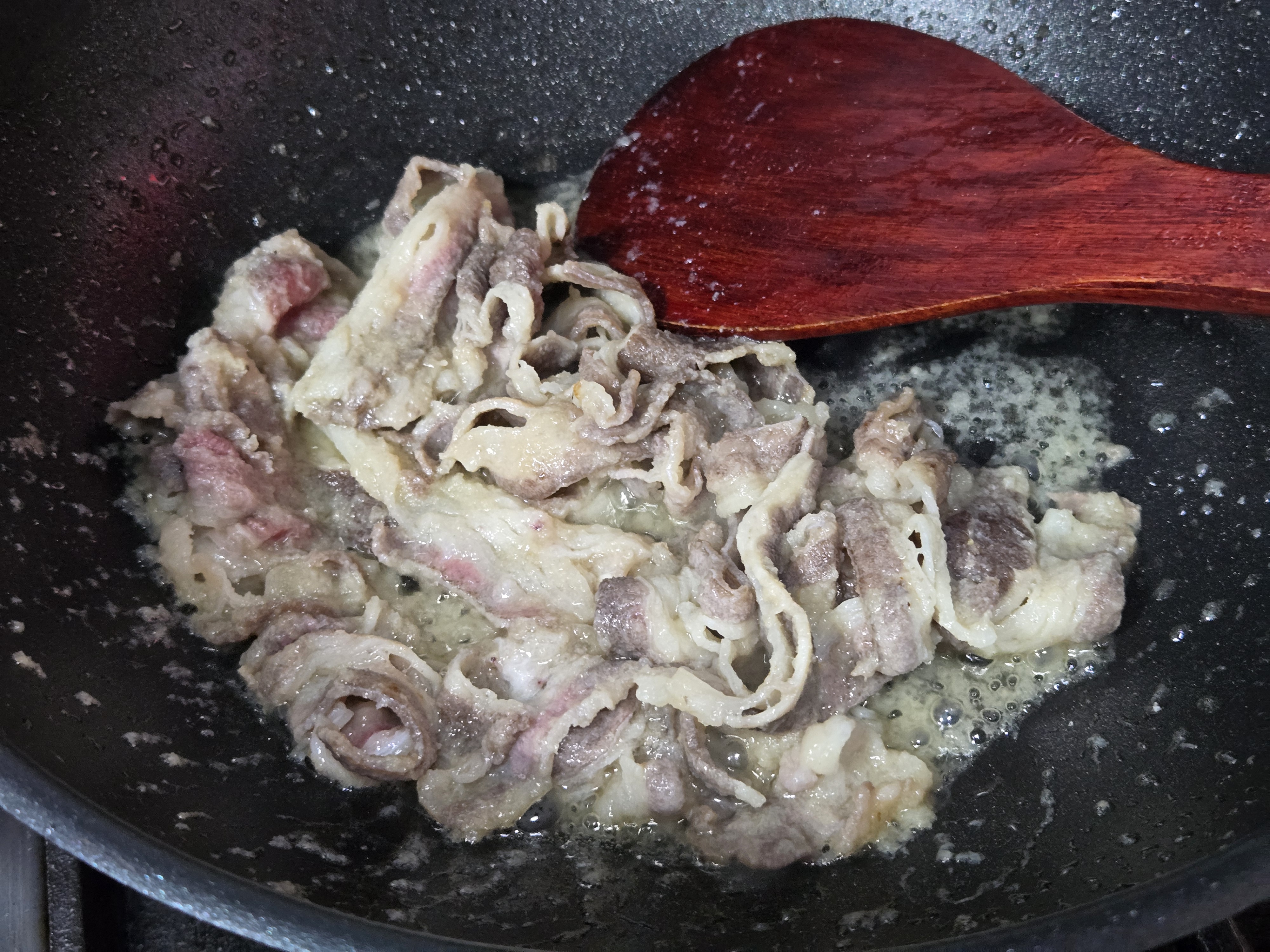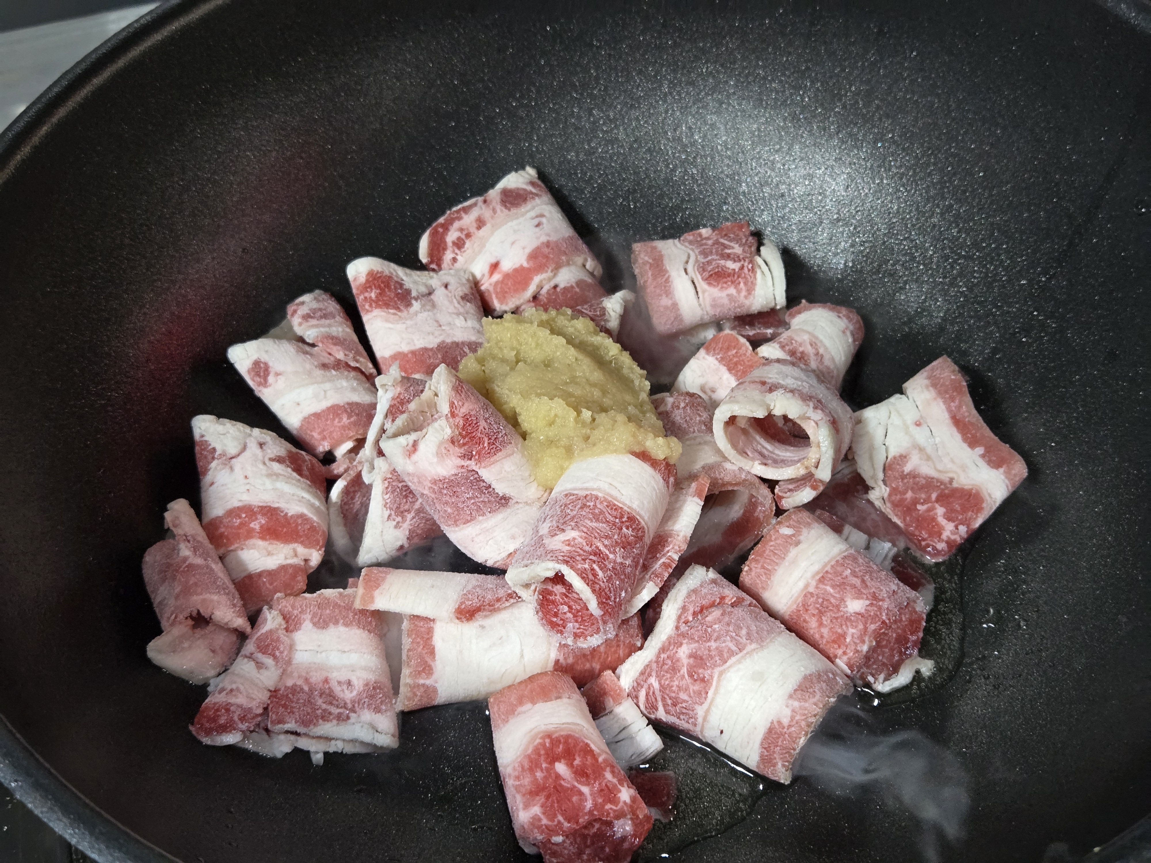 1. 우삼겹, 다진마늘 볶아주기