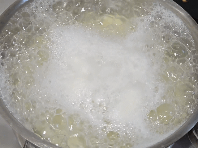이렇게 엉겨붙은 감자전분이 보이지 않게