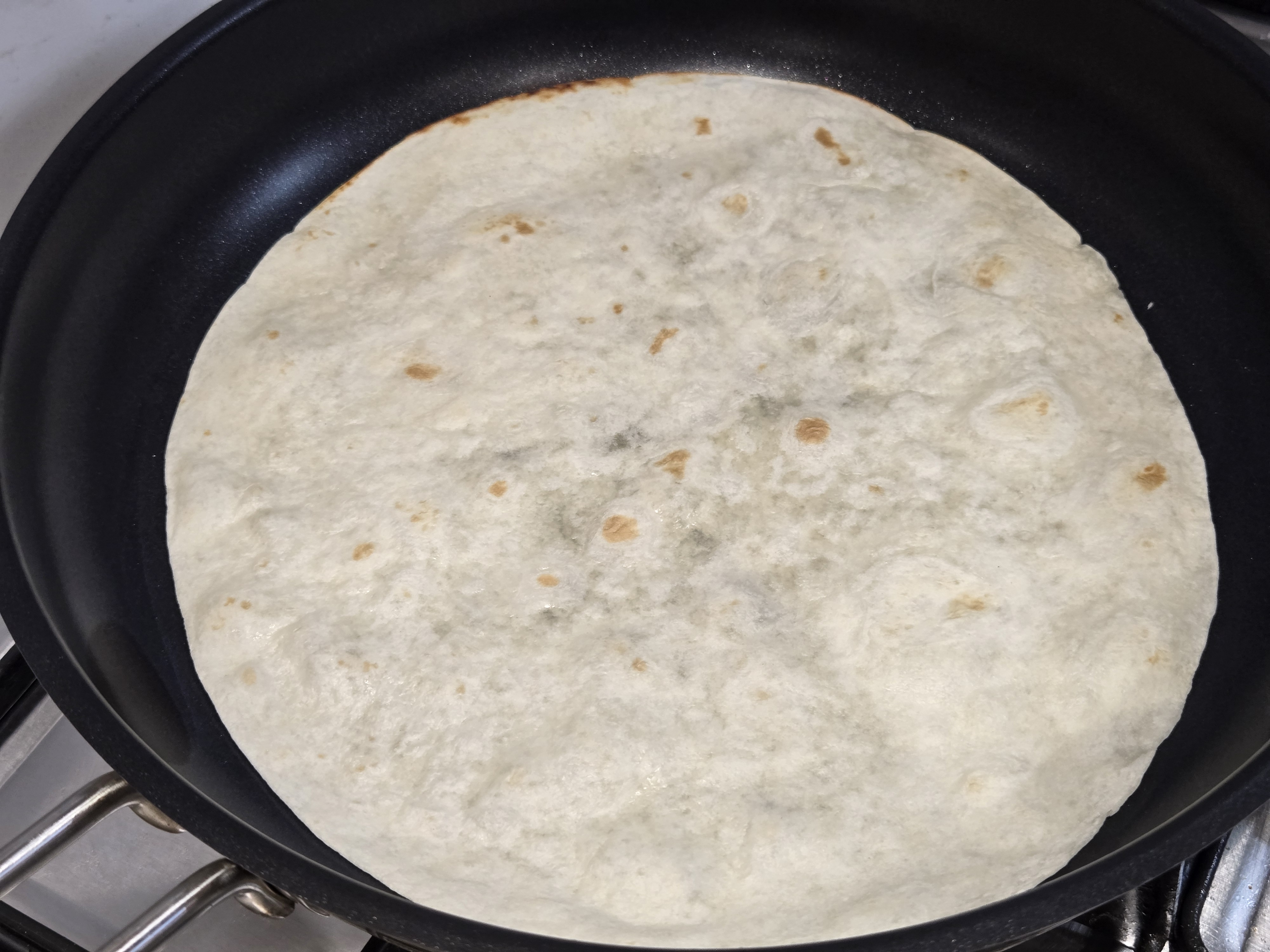 마른 팬에 또띠아를 앞뒤로 살짝 구워주세요