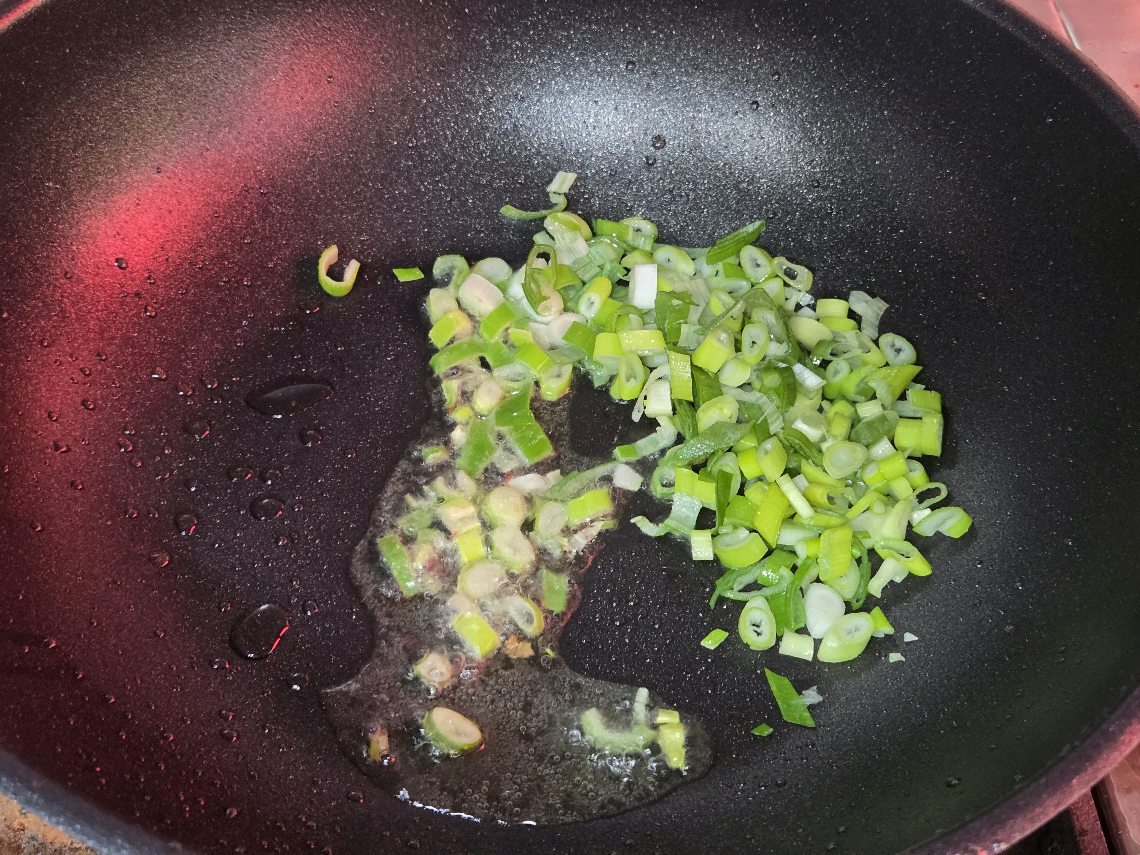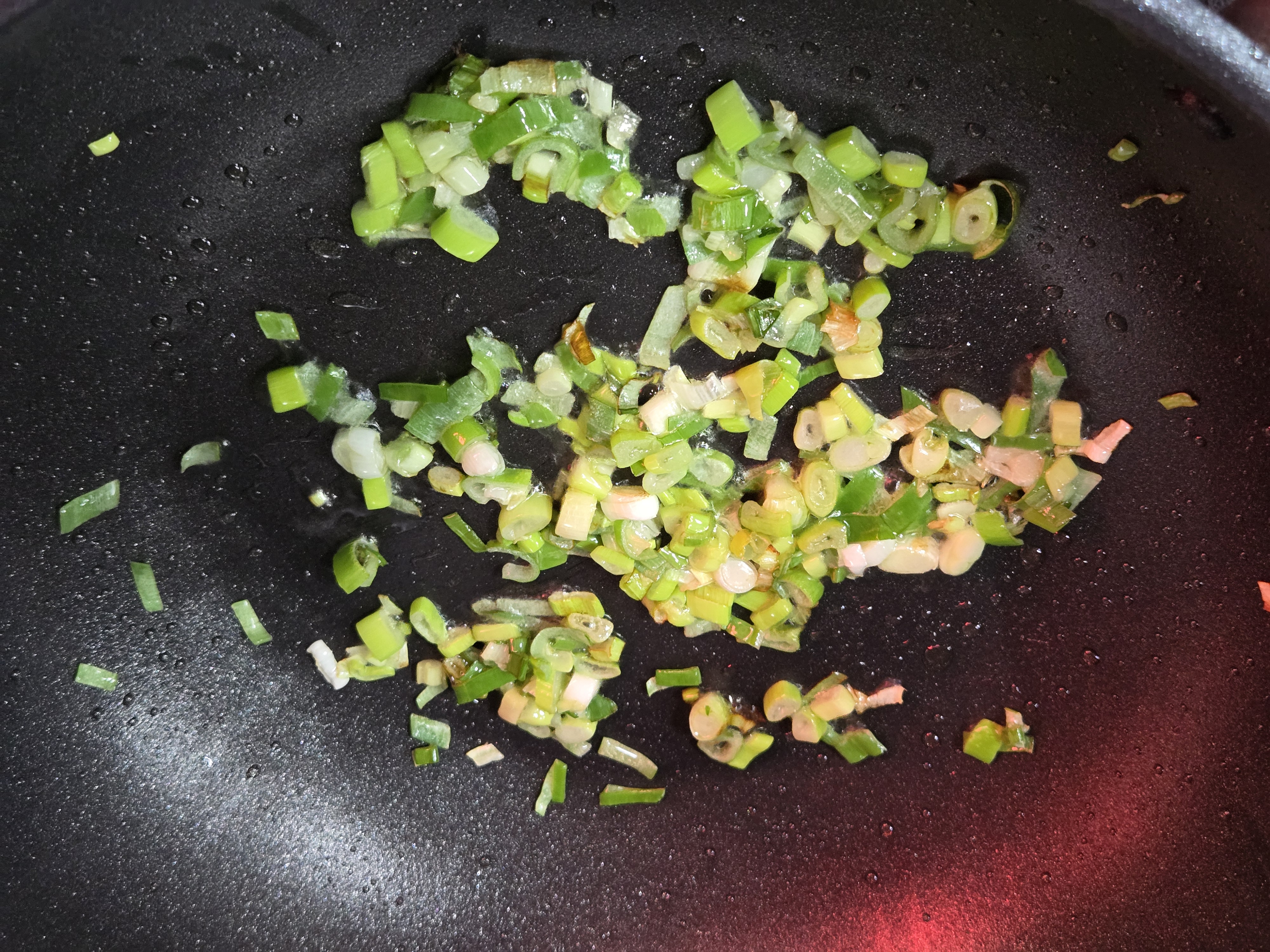 썰어둔 파를 넣어 중불에서 볶아주세요