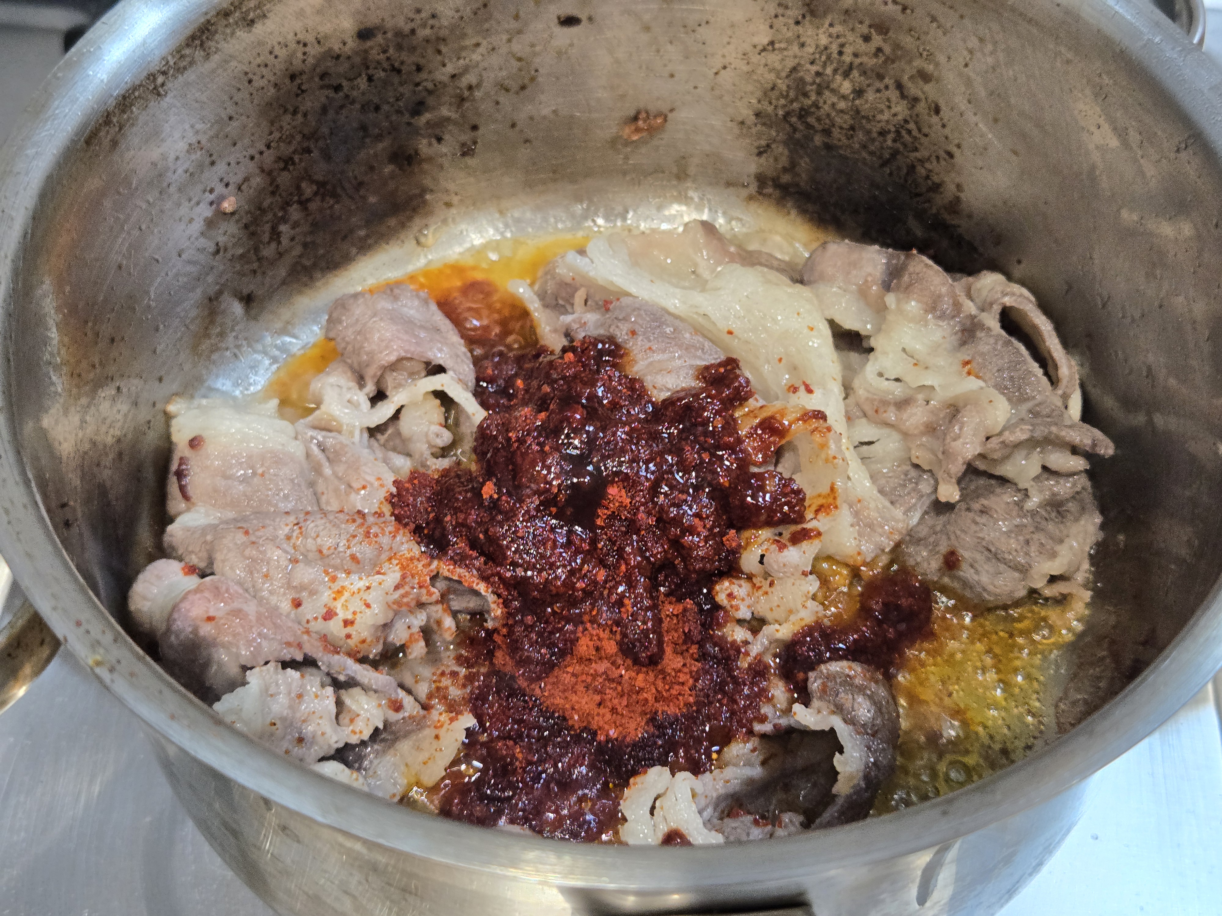 파기름으로 우삼겹을 볶아주면 됩니다!