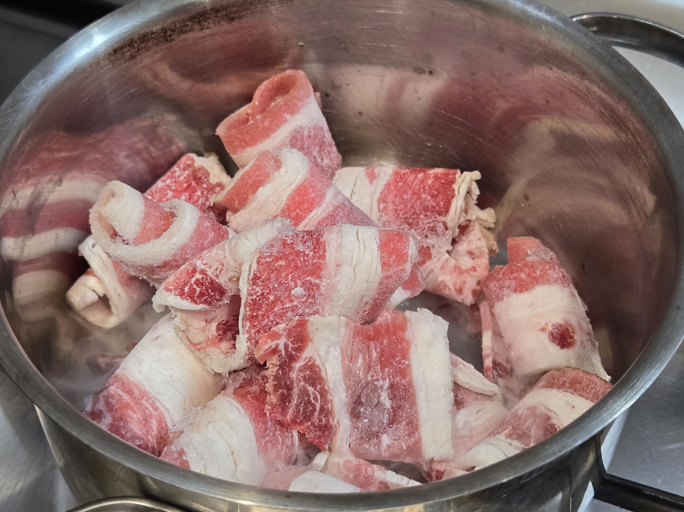 냄비에 우삼겹과 송송 썬 대파를 넣고,