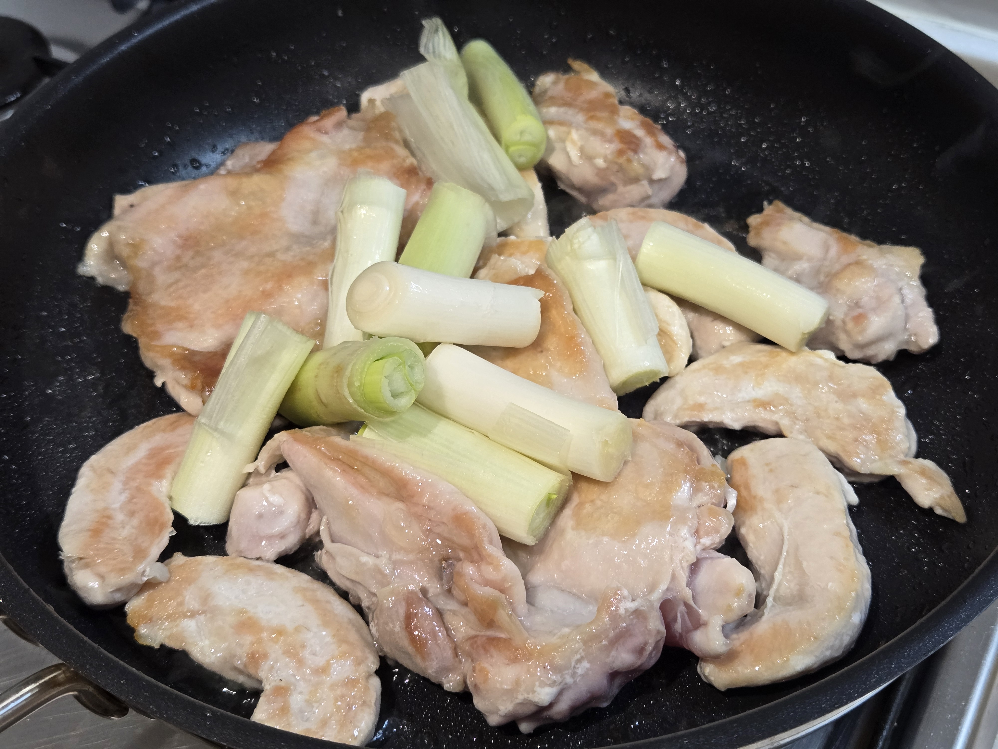 닭을 뒤집어주면서 대파 1단 송송 썰어 넣을게요!