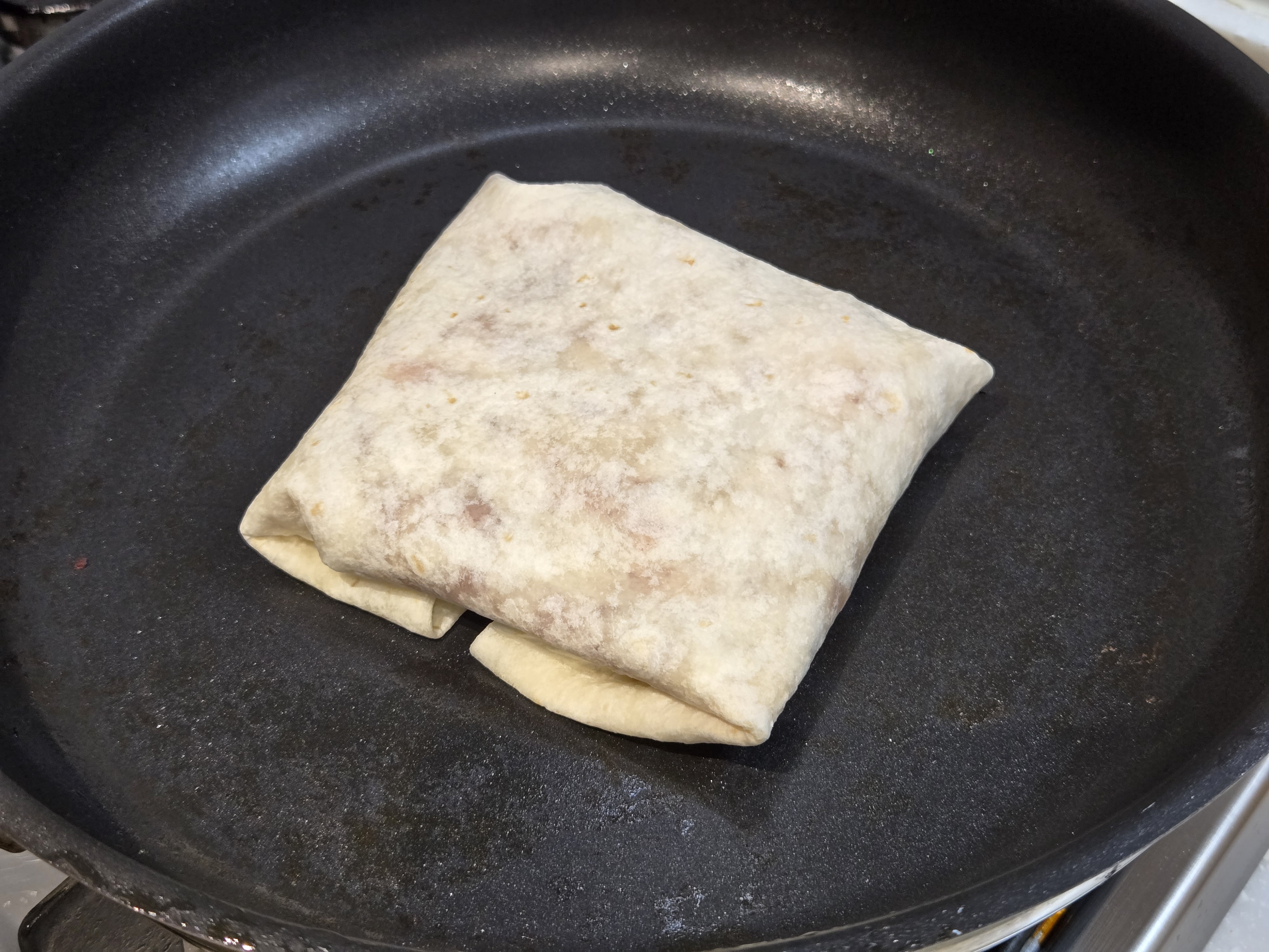 기름 두르지 않은 팬에 또띠아를 올리고