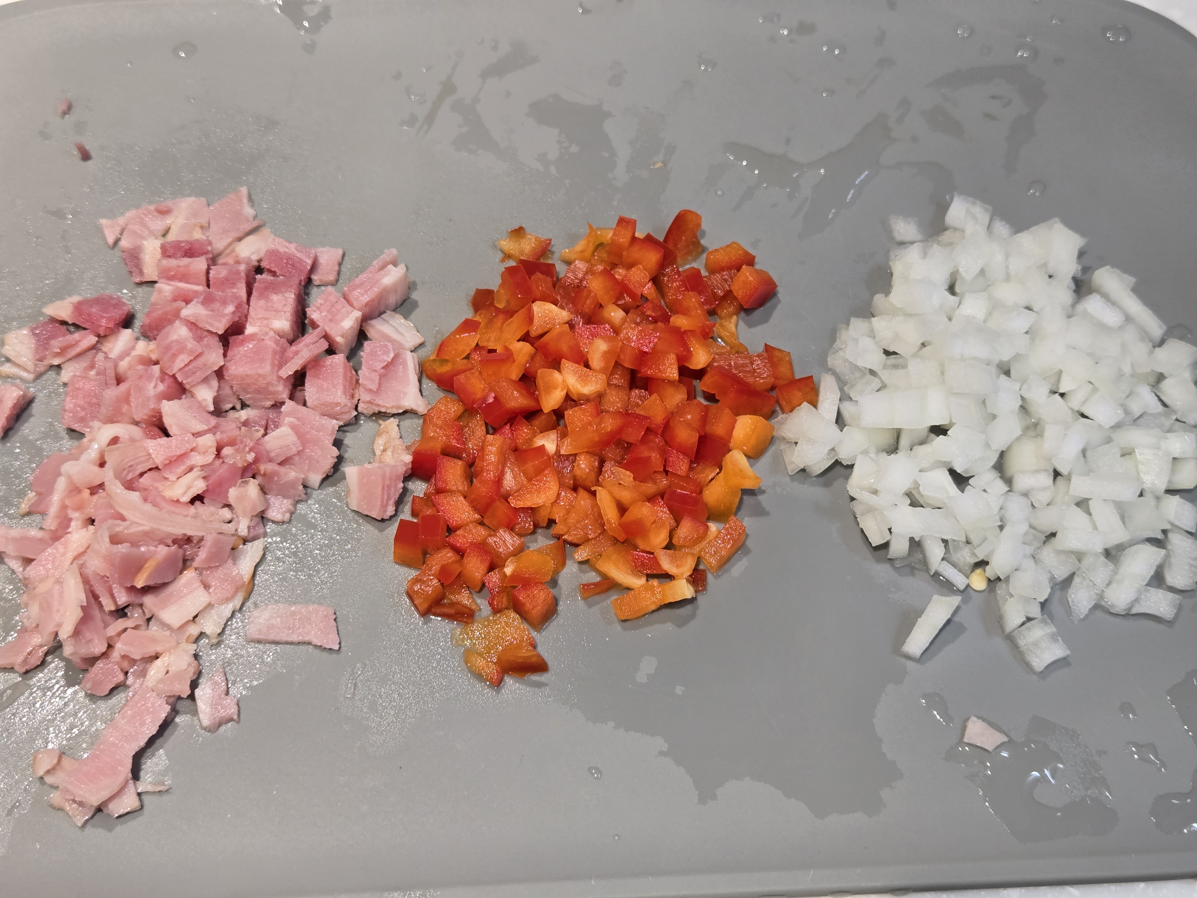 양파, 햄, 파프리카, 캔옥수수 등