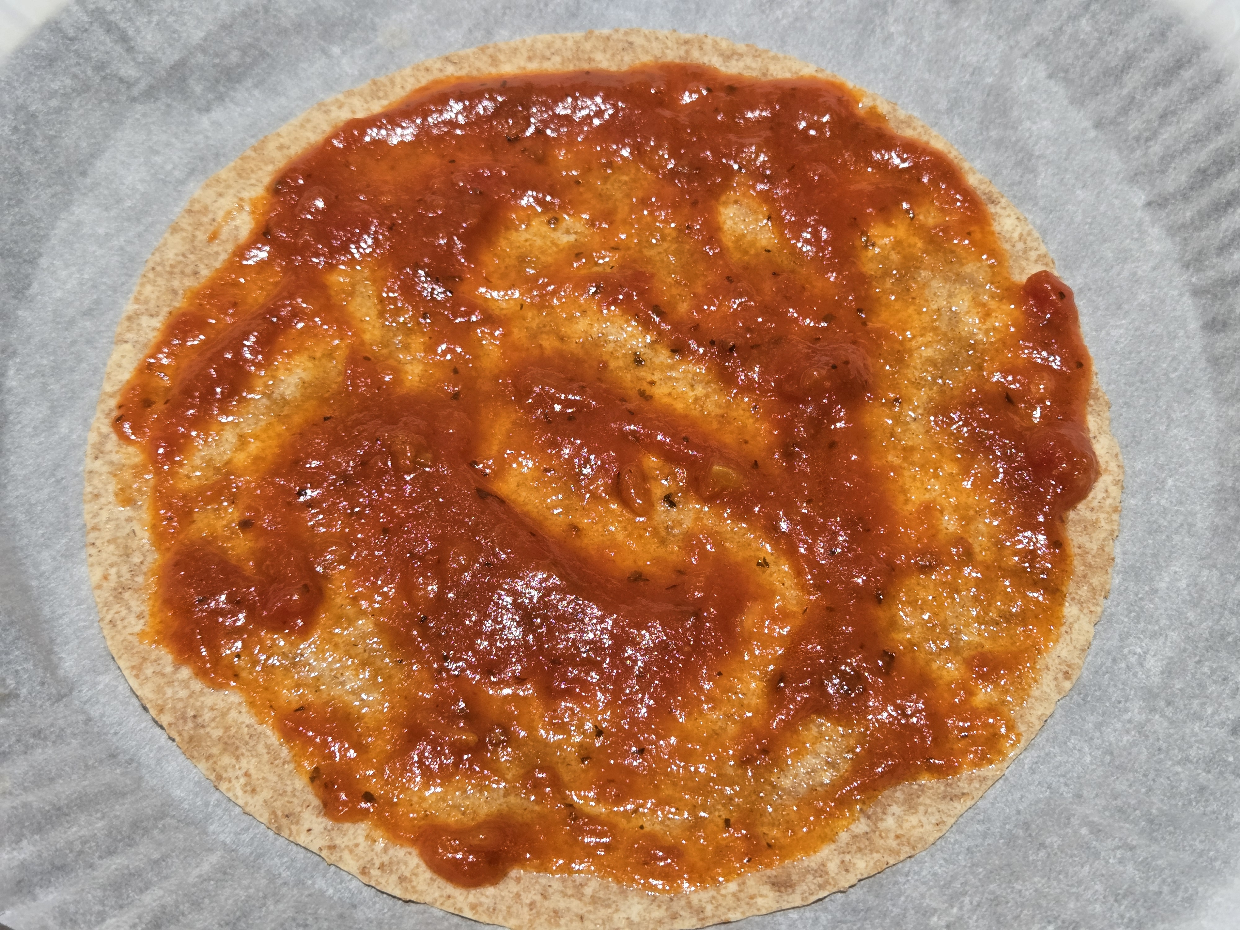 또띠아 위에 토마토소스를 골고루 펴 발라줍니다