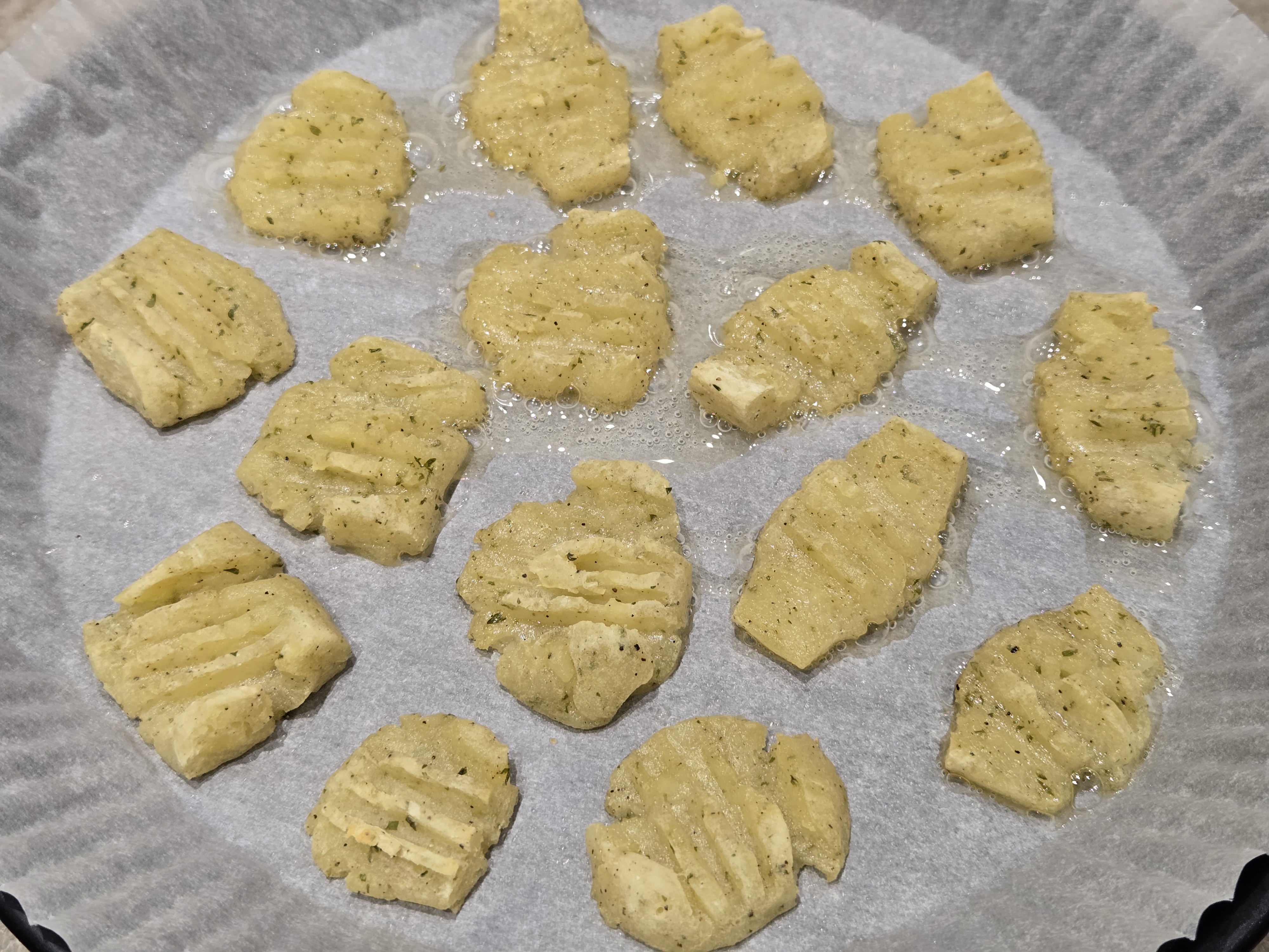 기름을 가볍게 묻혀 180도에서 10분 구운 뒤, 뒤집어서 10분 더 돌려주면 완성!