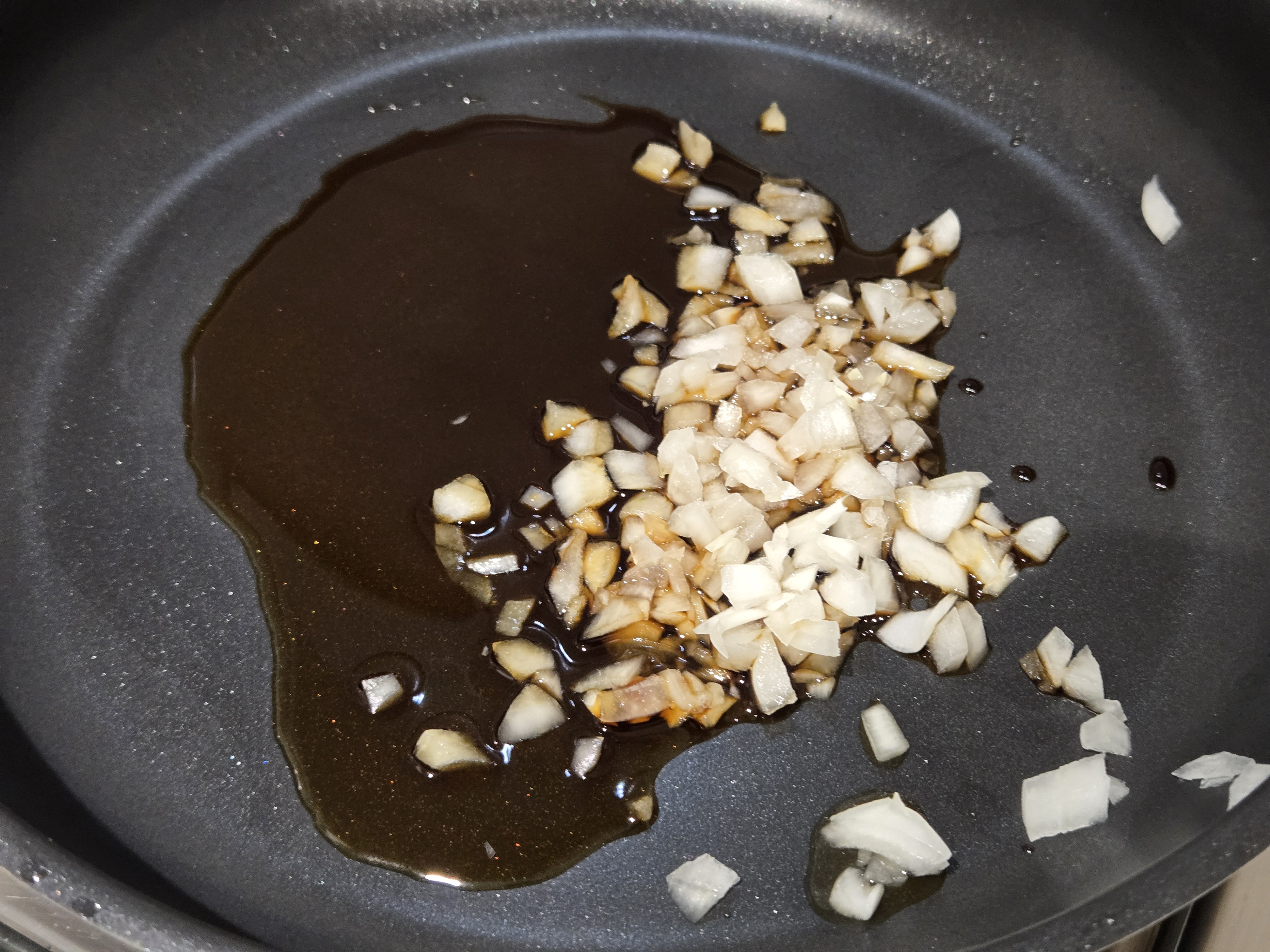 다진 양파와 다진 마늘을 넣고