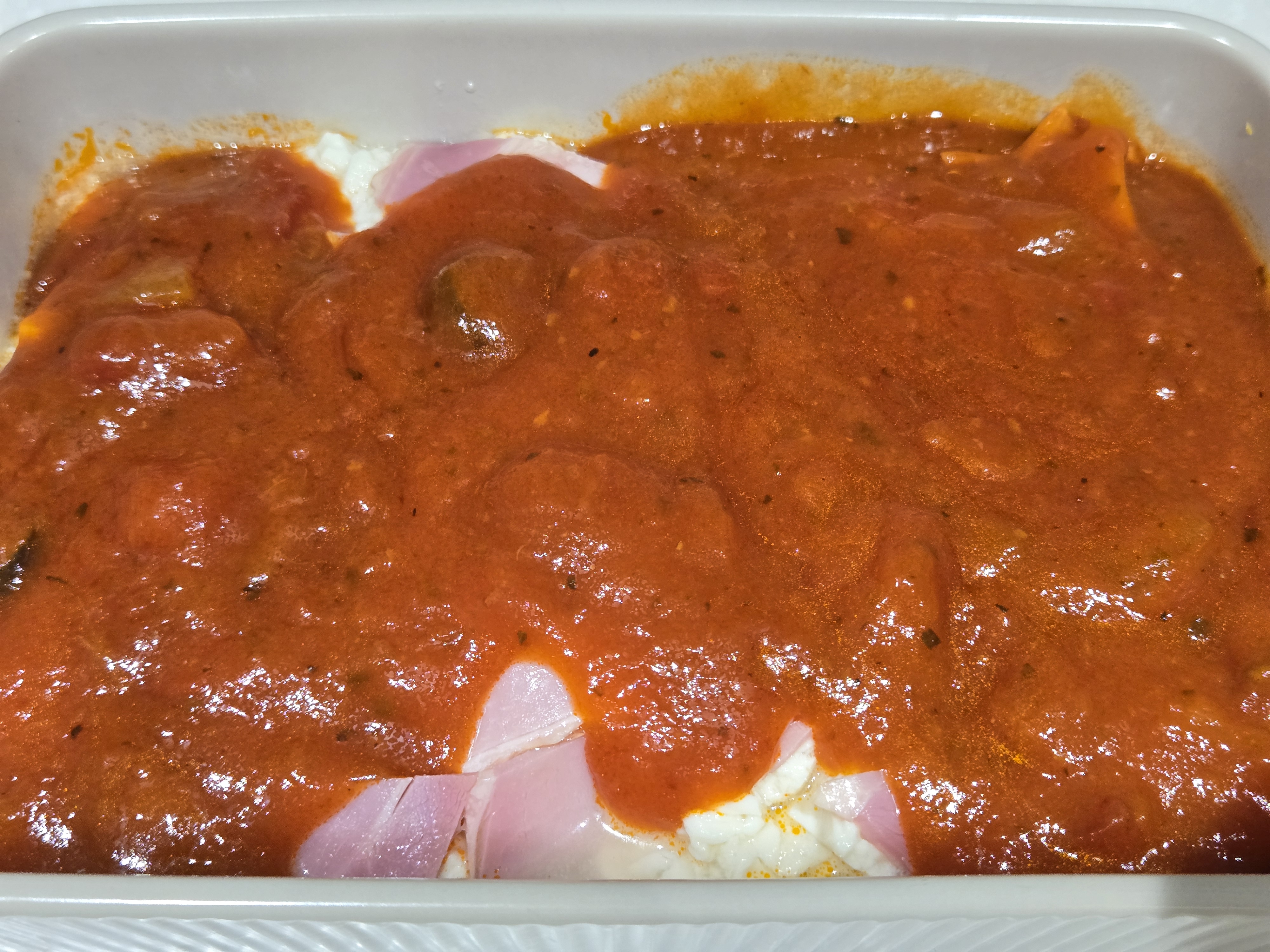 순두부 위에 토마토 소스를 듬뿍 올려줍니다