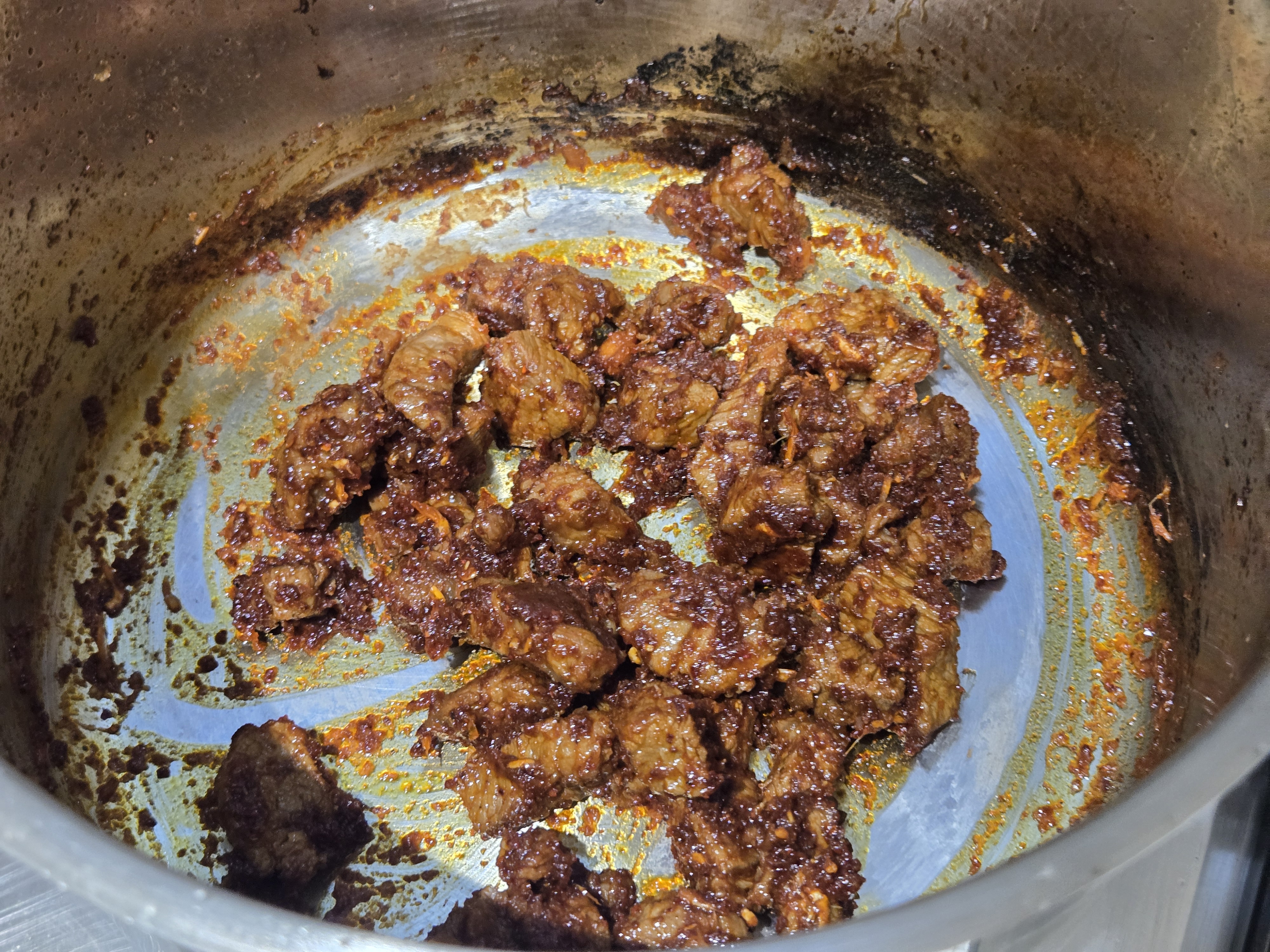 고기를 넣고 노릇노릇 해 질때 까지 볶아주며
