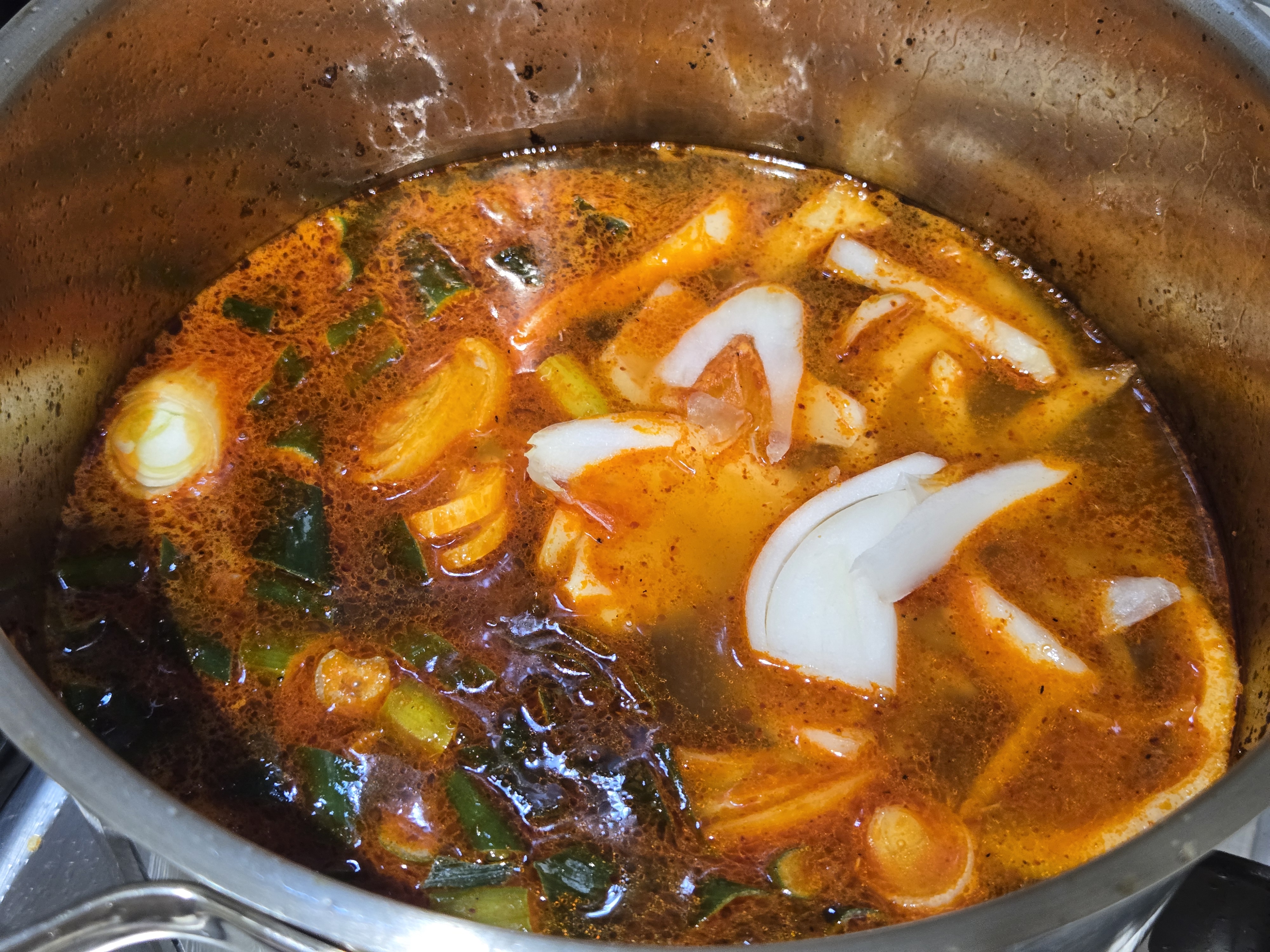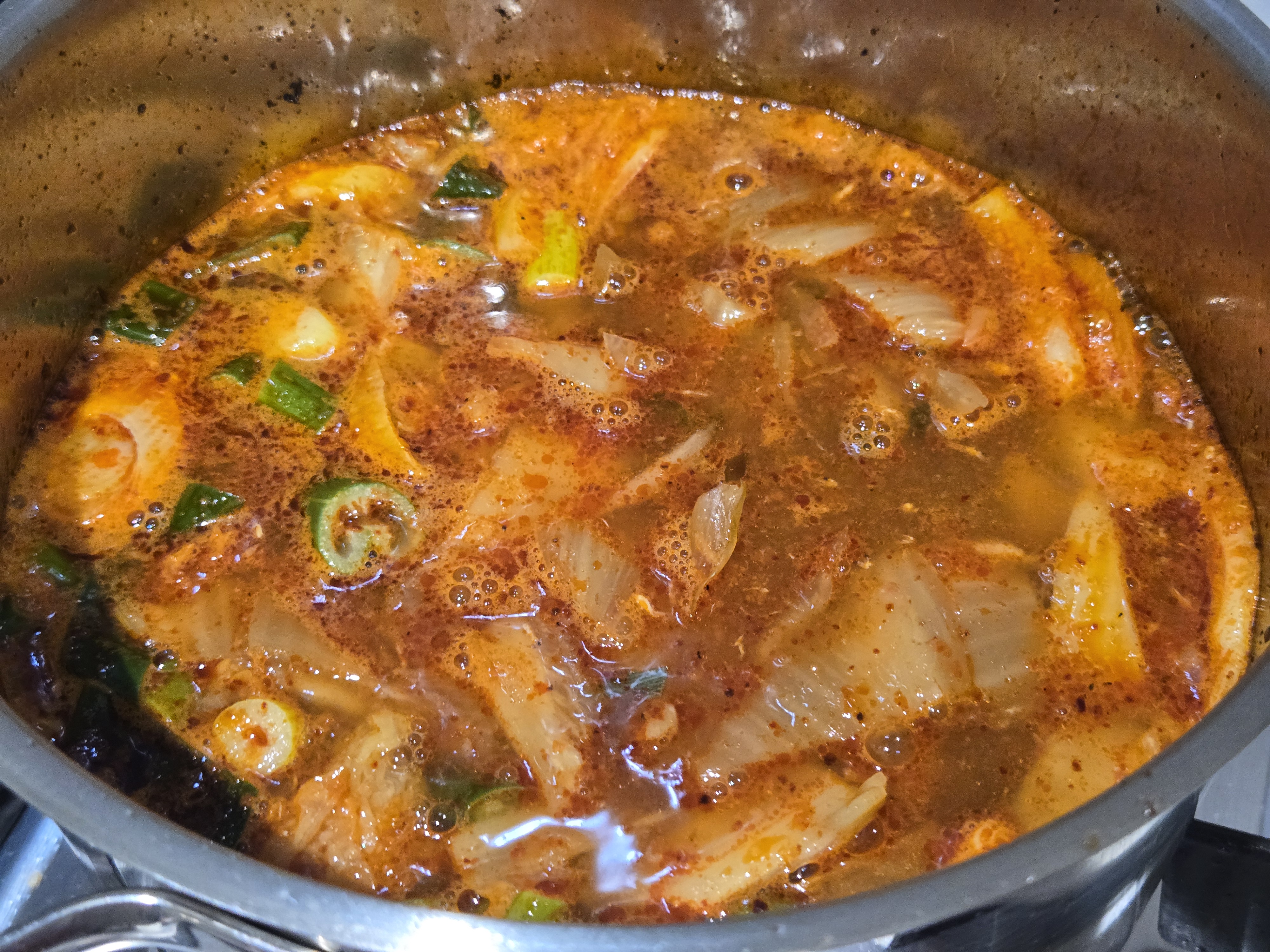 이제 약불로 줄여 고춧가루 2스푼 넣어줄게요!