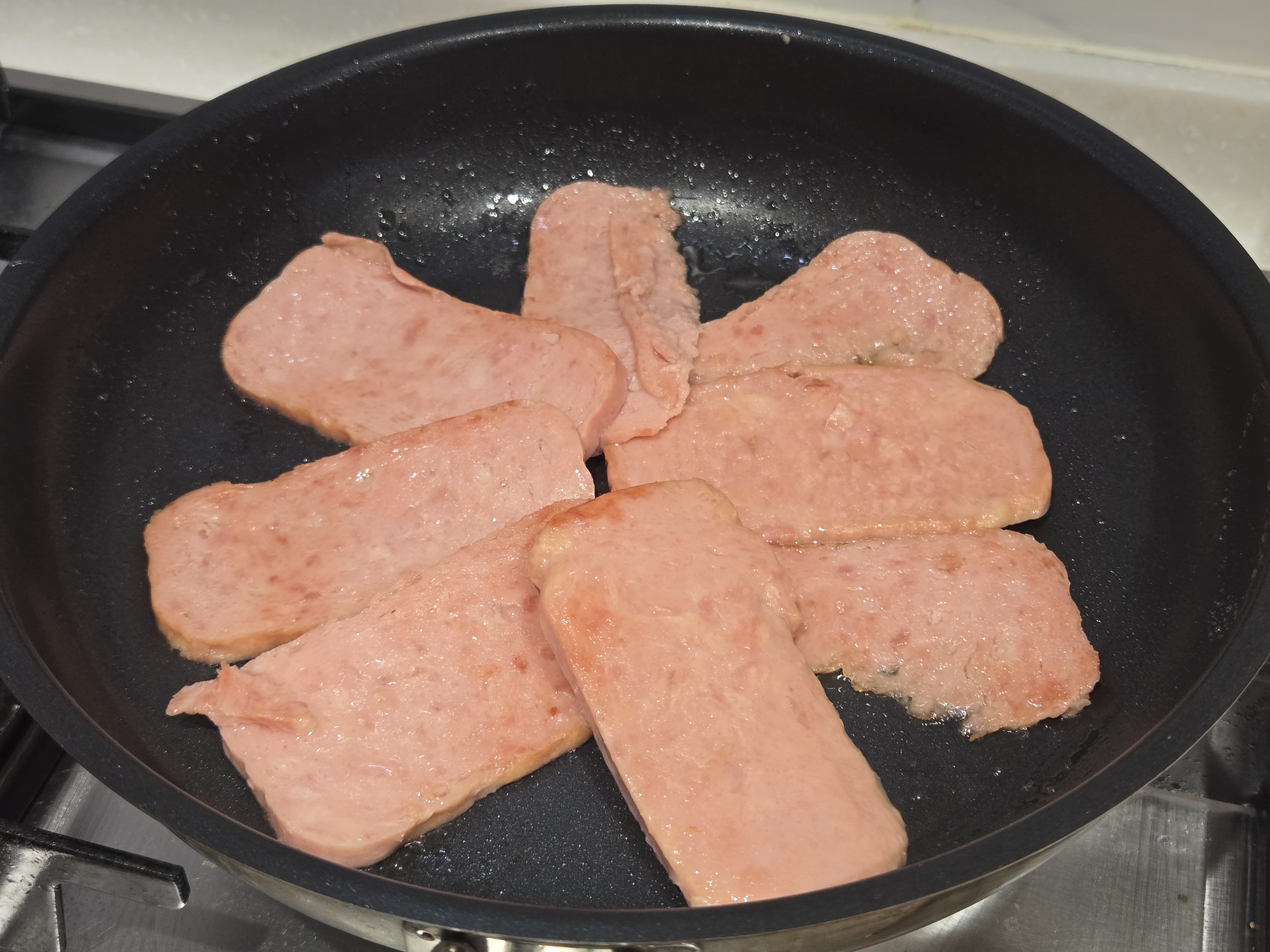 스팸이 구워지면서 기름이 조금 나오니까