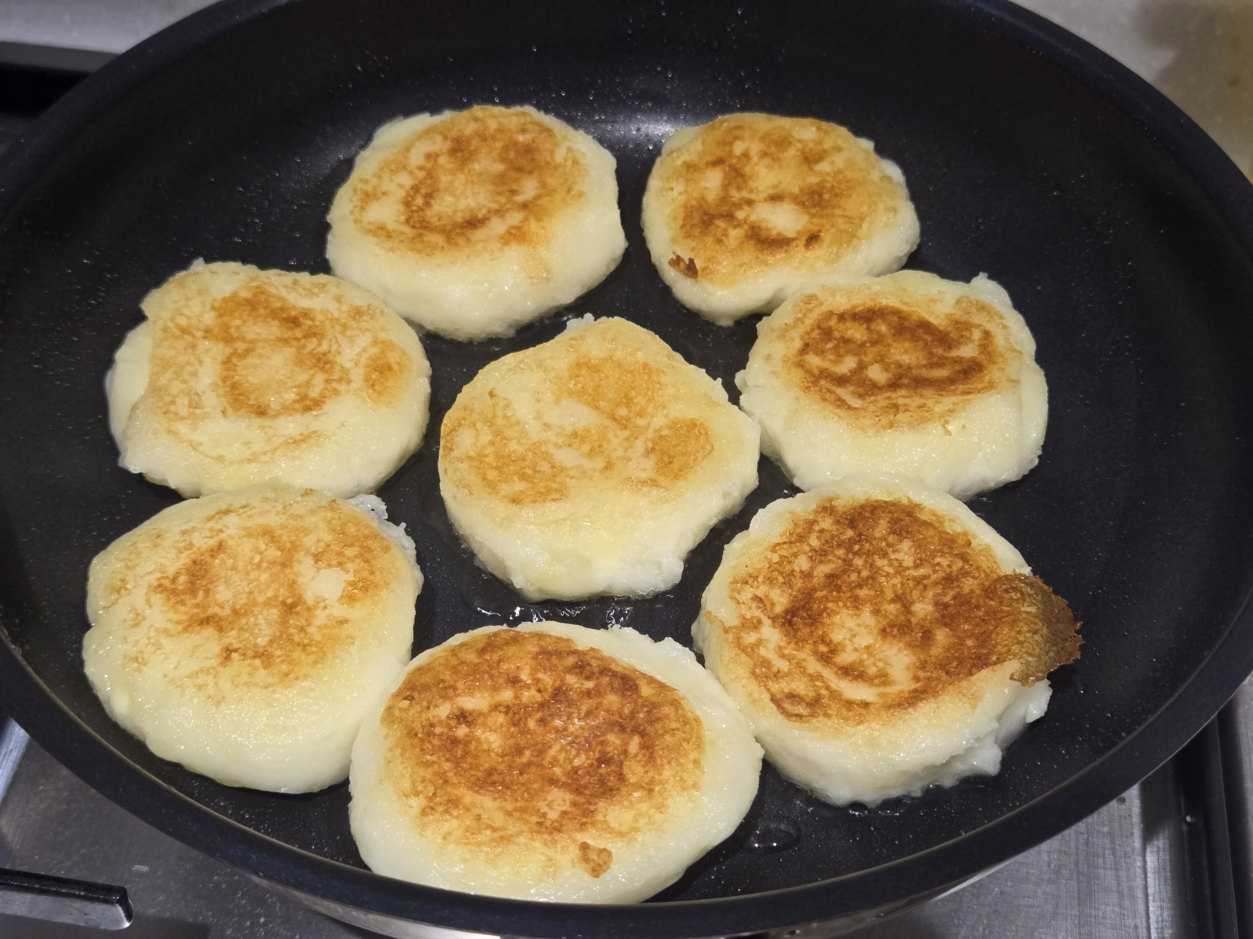 감자빵을 올려 노릇노릇하게 앞뒤로 구워줍니다