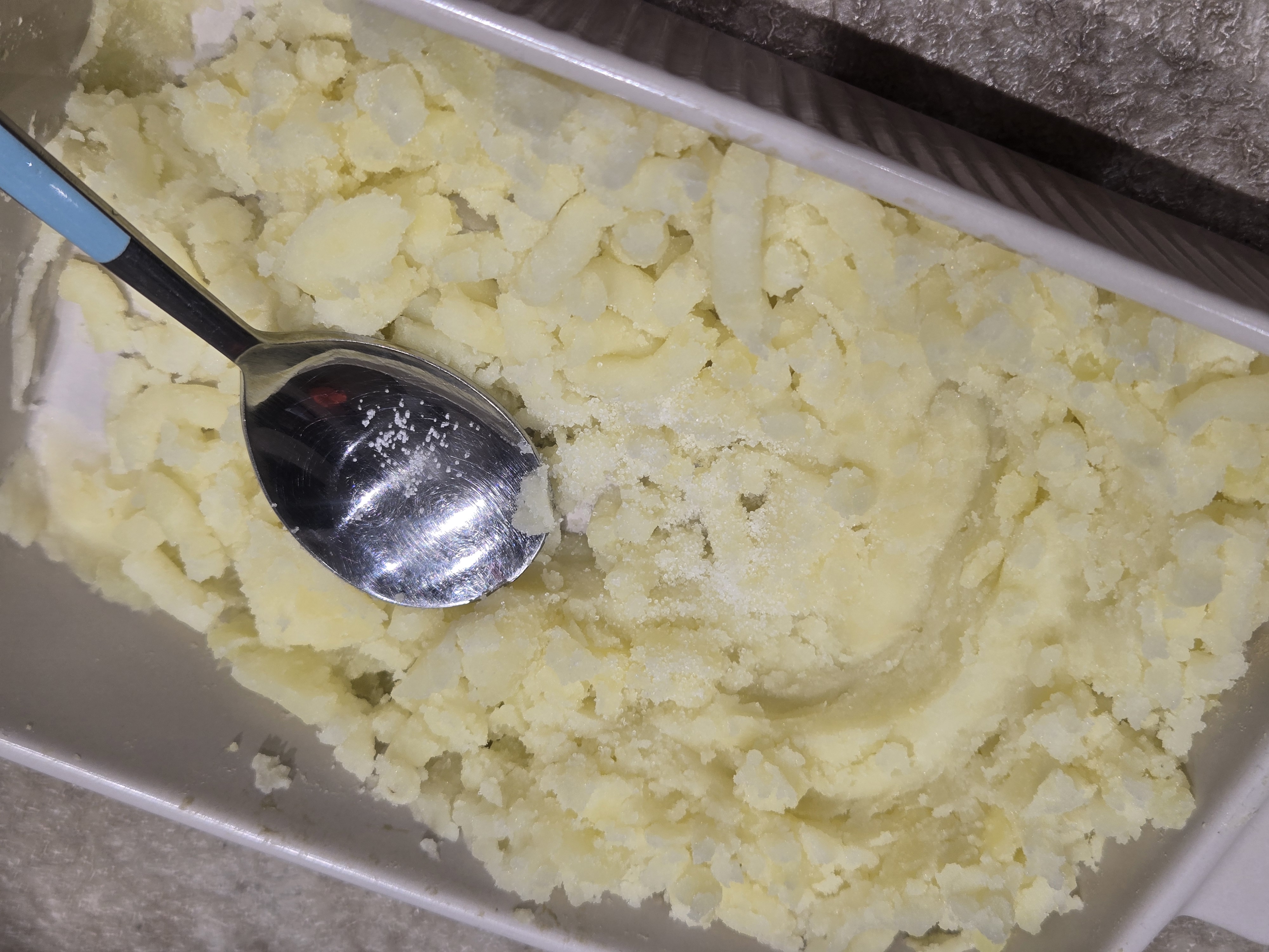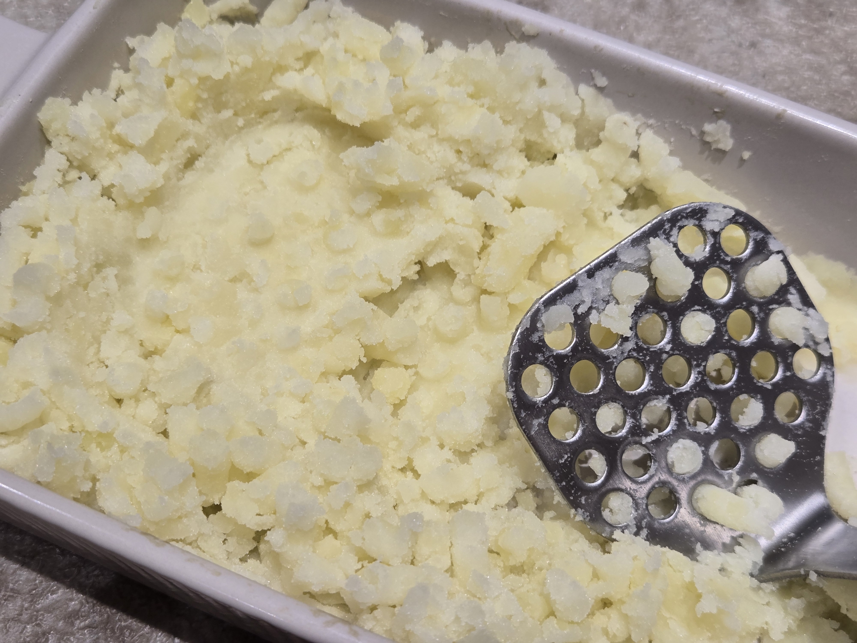 잘 익은 감자는 뜨거울 때 으깨주세요