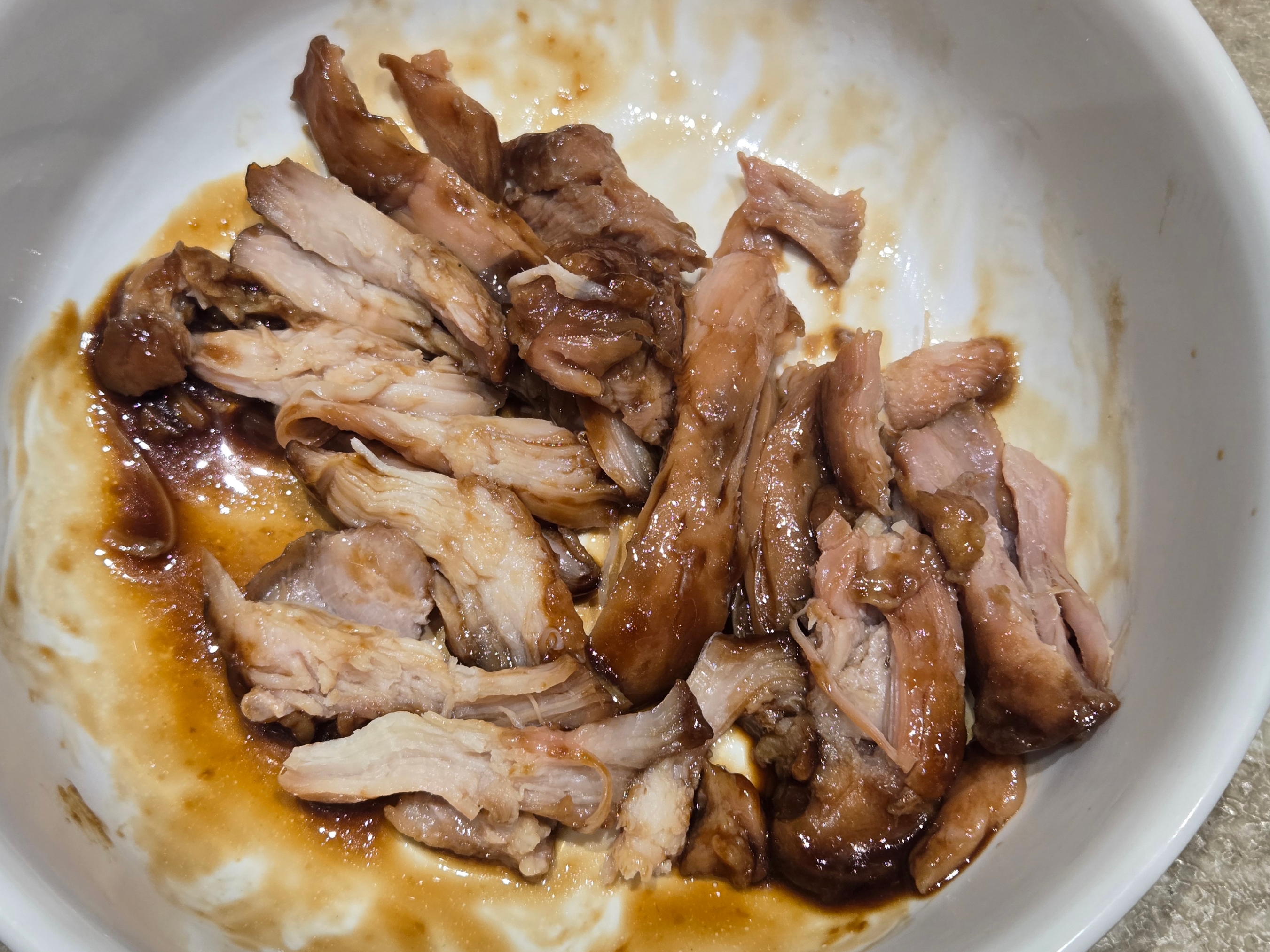 익힌 닭가슴살을 먹기 좋은 크기로 찢어주세요