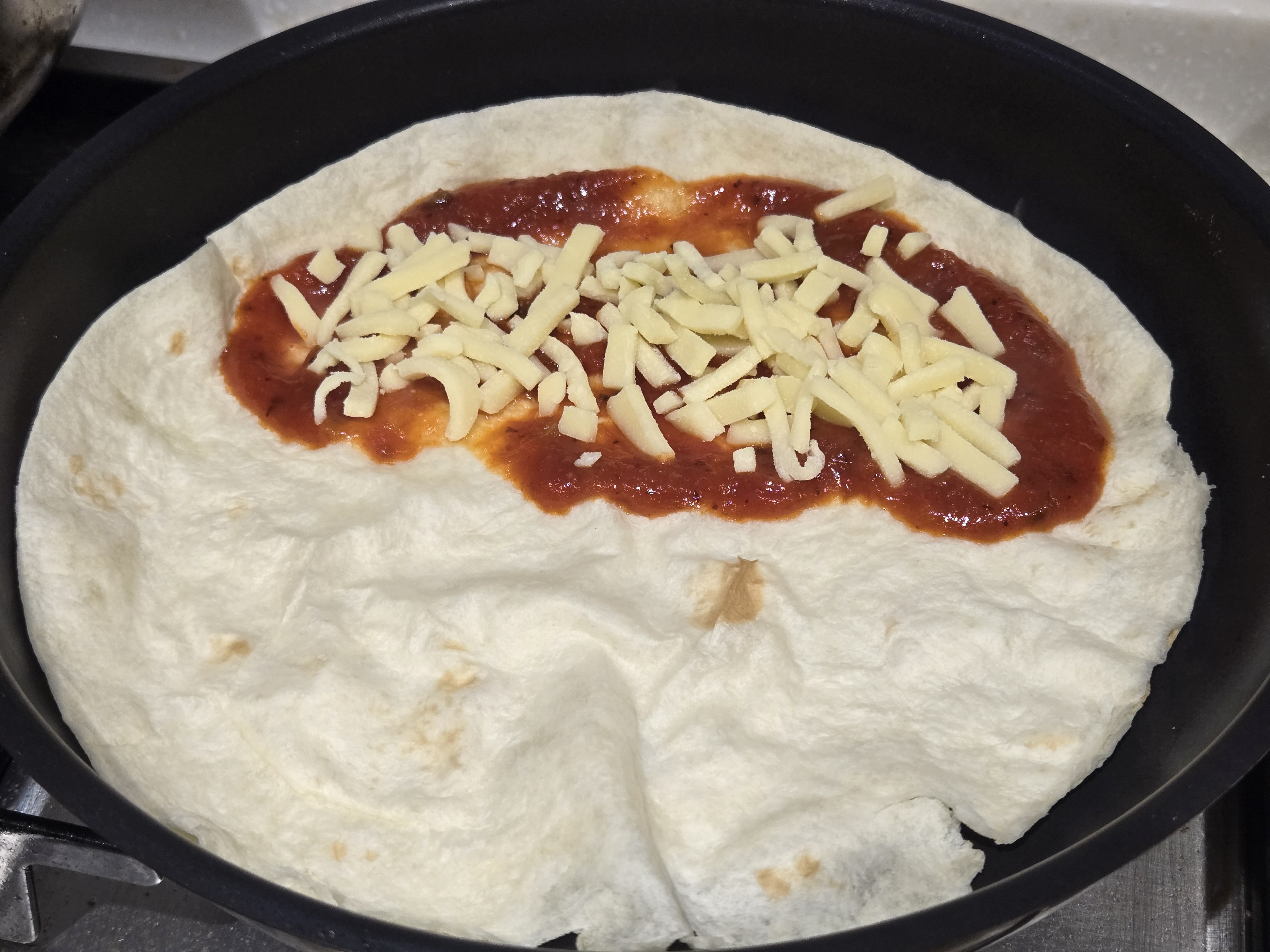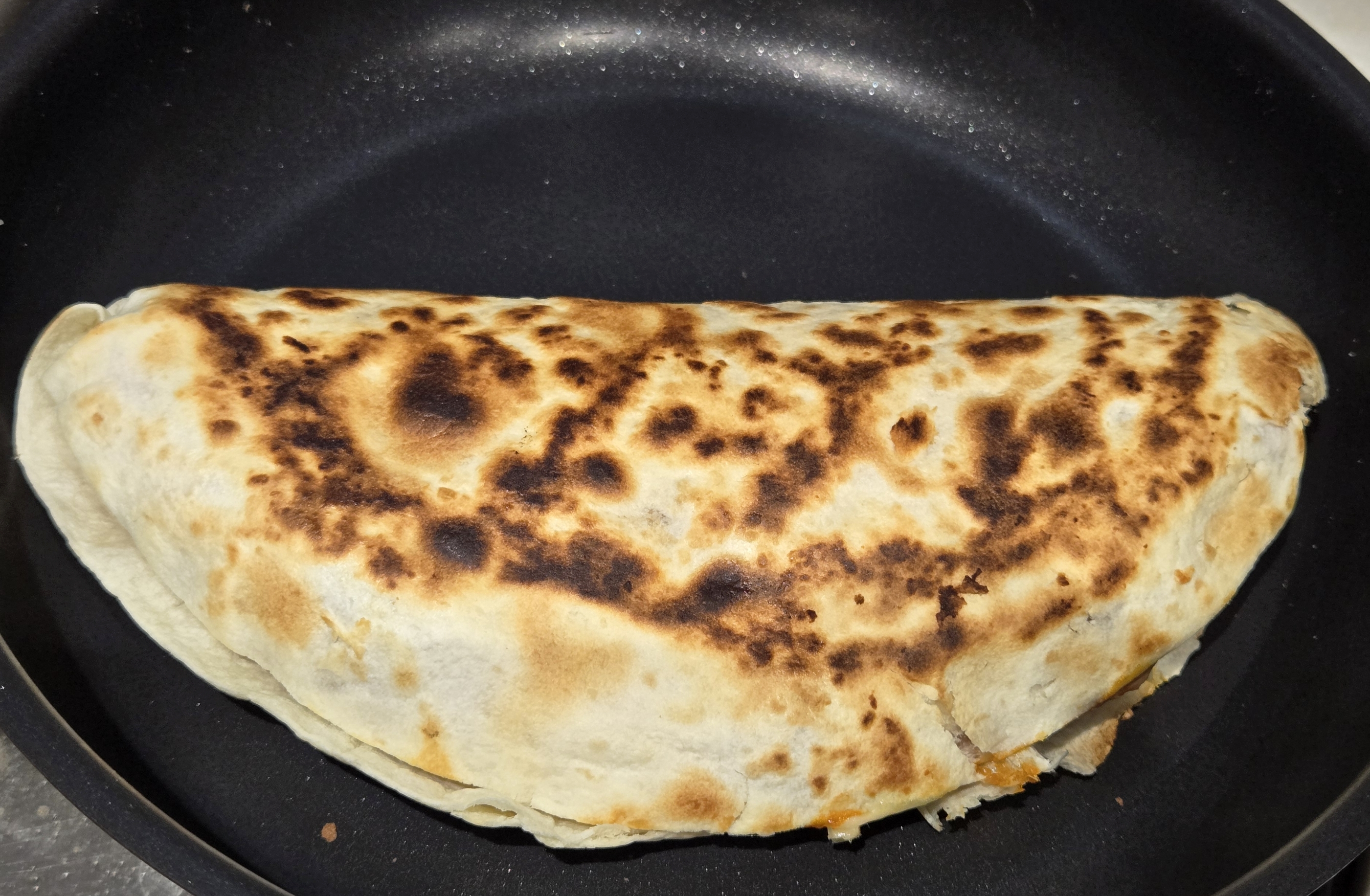모든 재료를 넣어준 또띠아를 반으로 접어