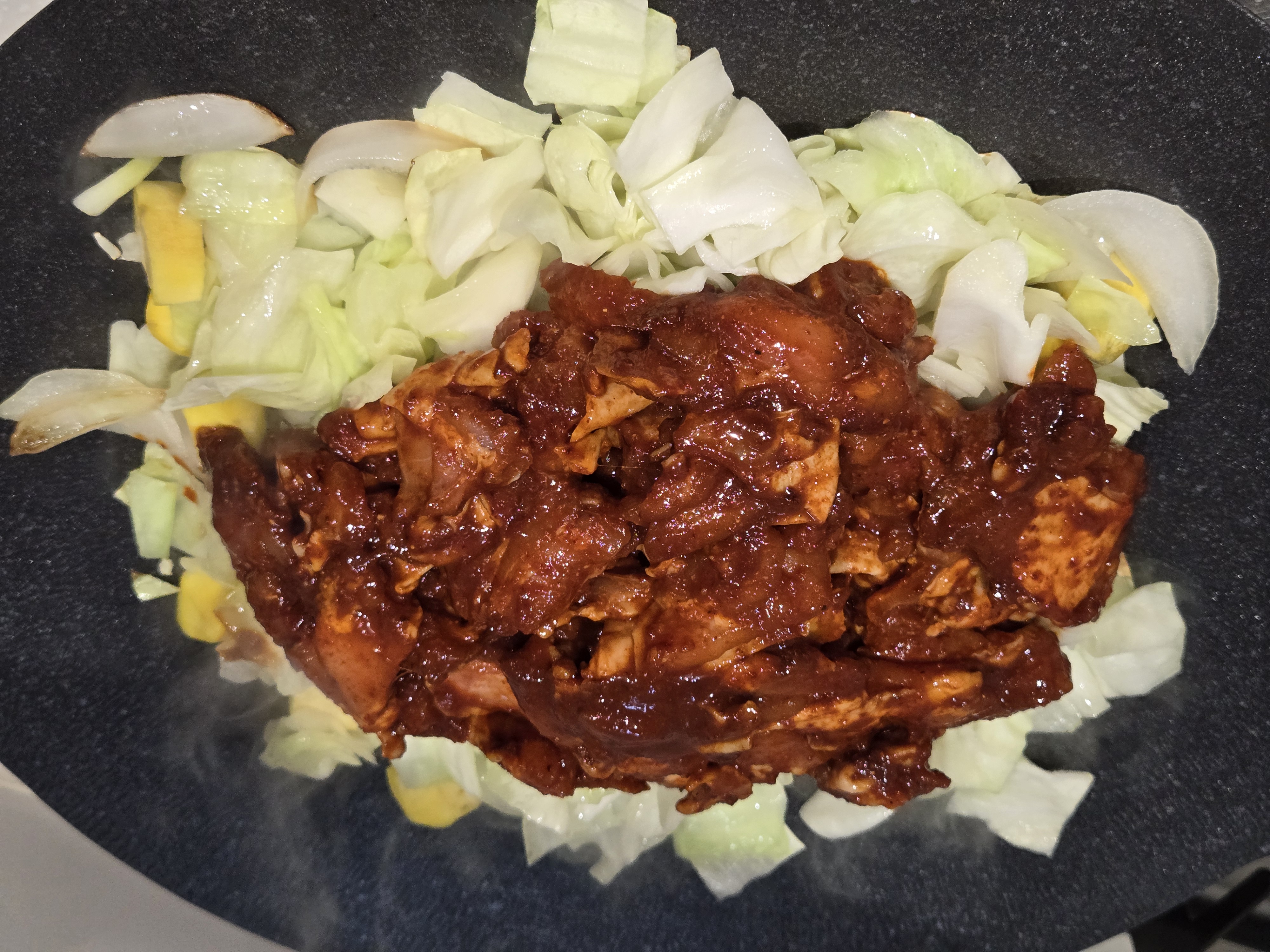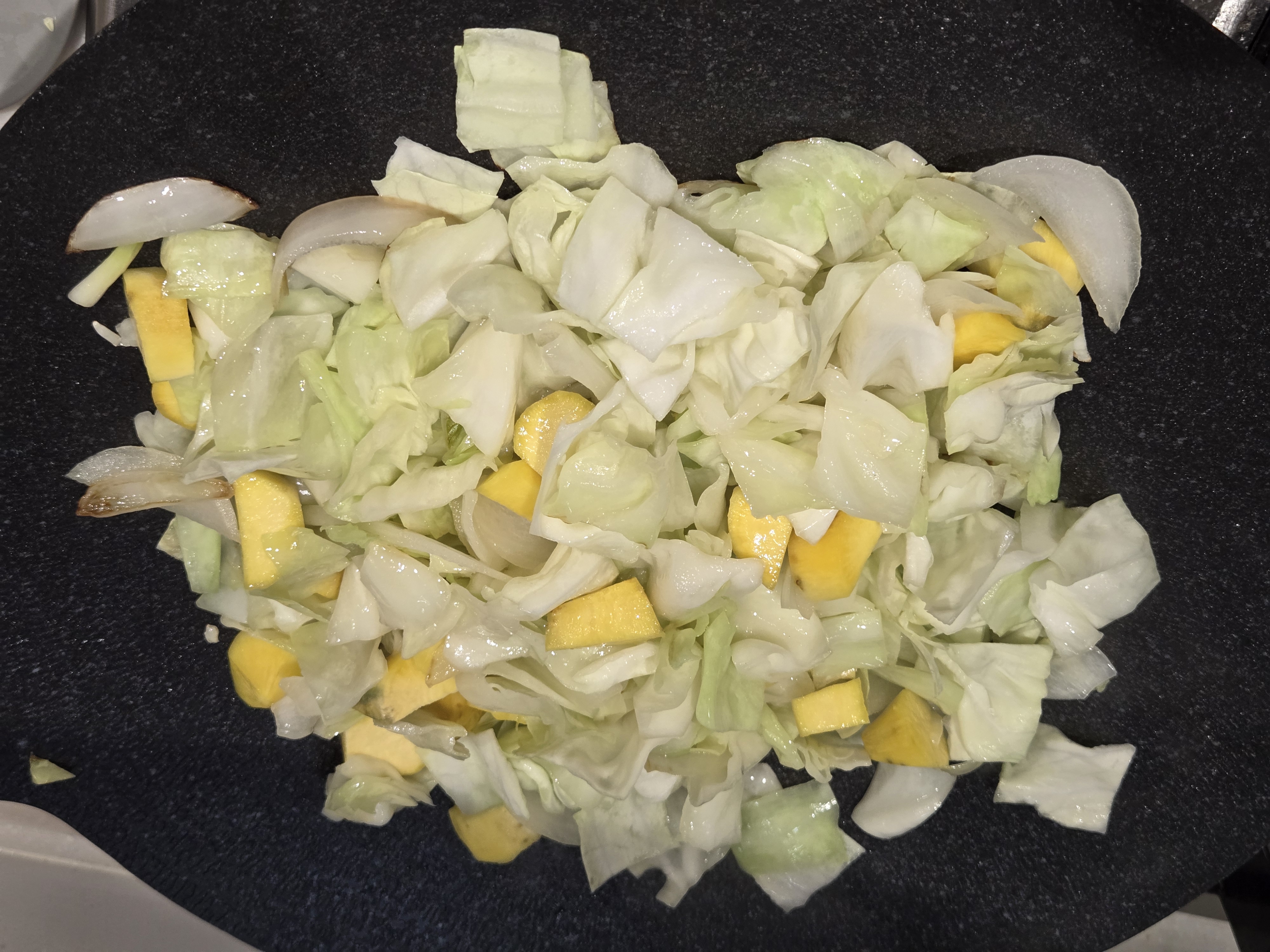 양배추와 고구마를 넣고 강불로 올려 볶다가,