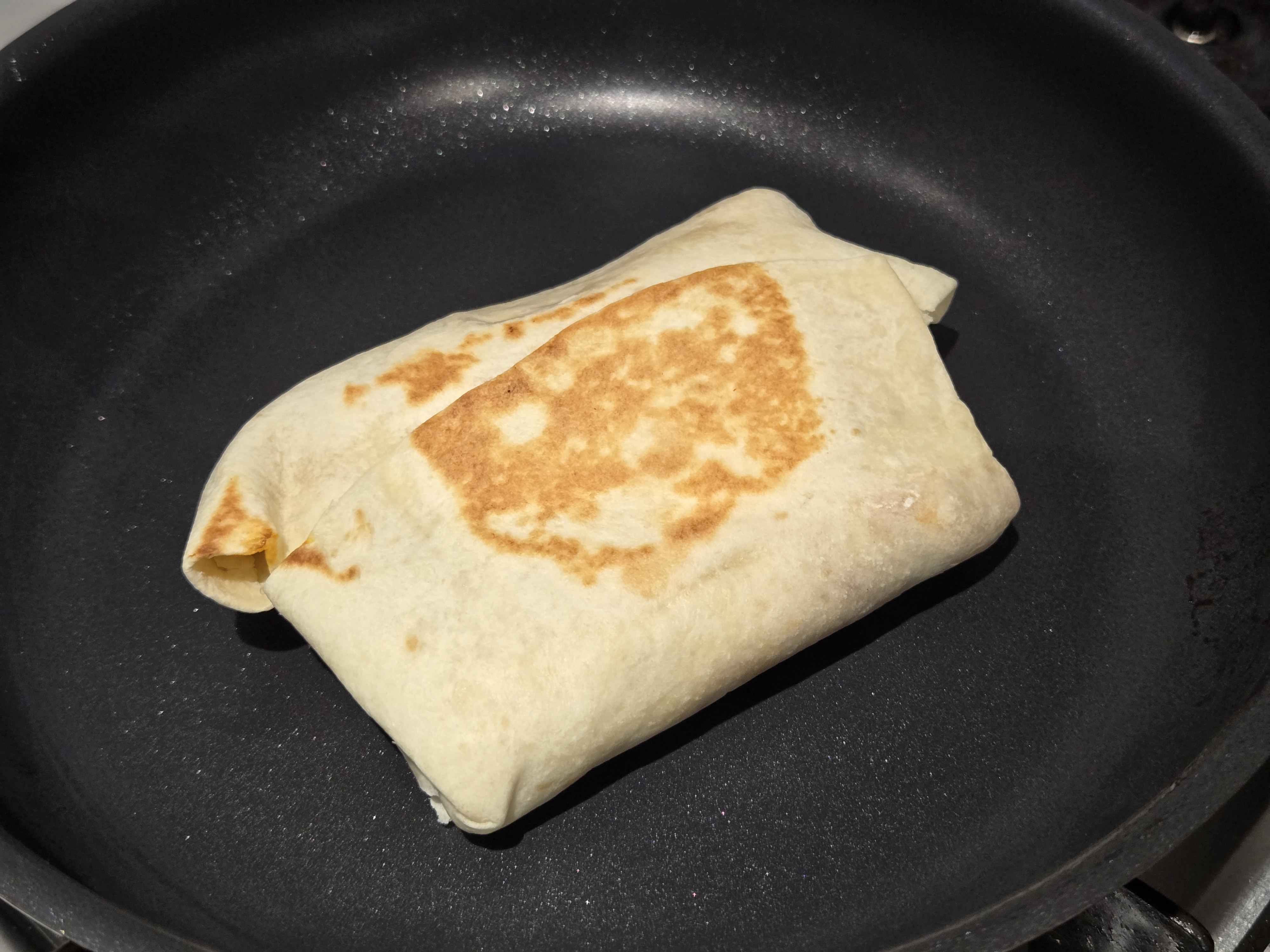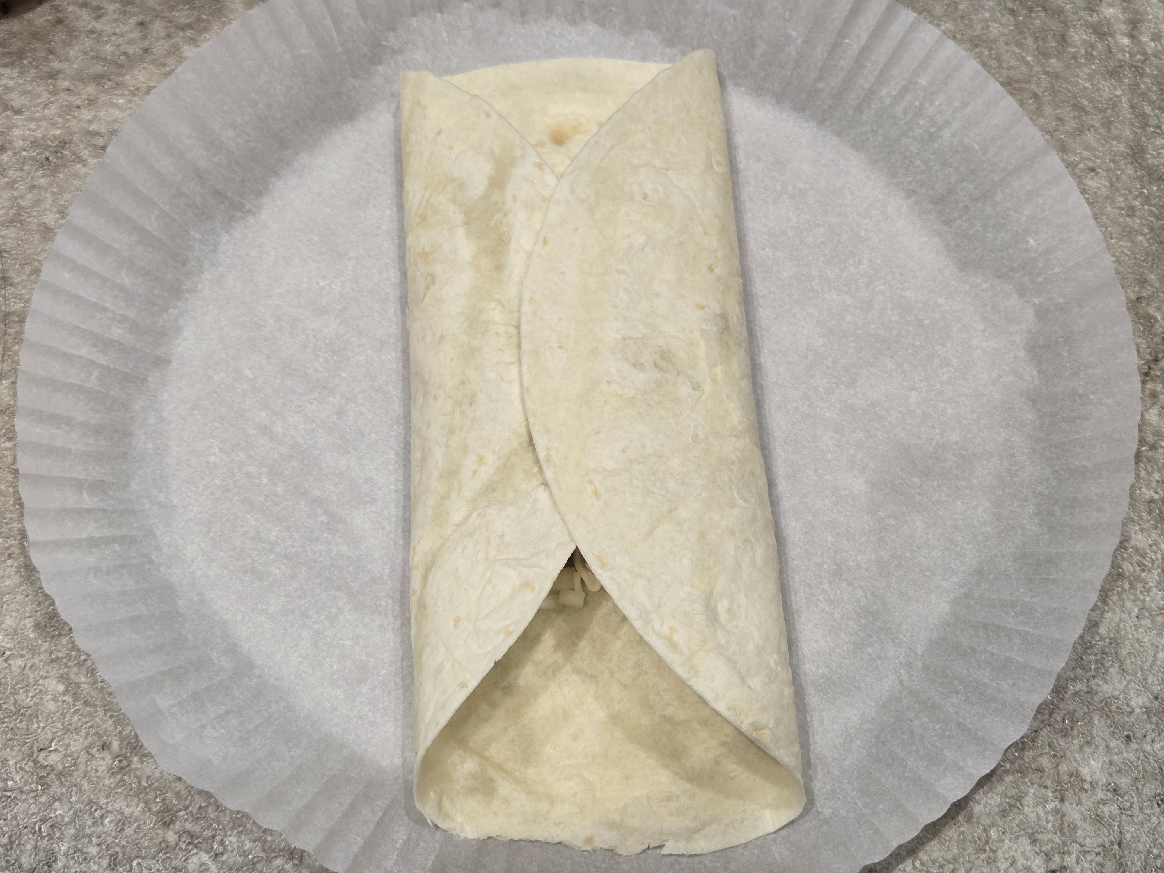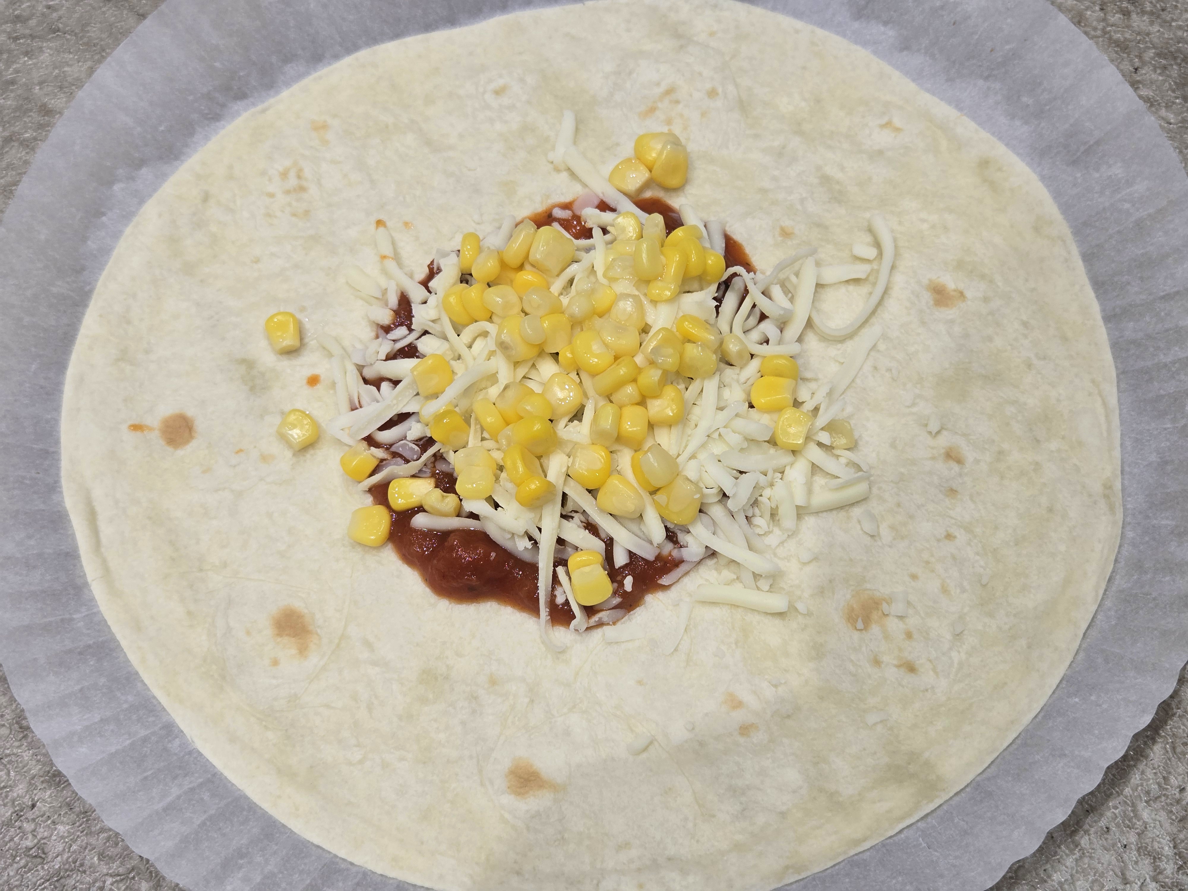 그런 다음 또띠아를 반으로 접고,