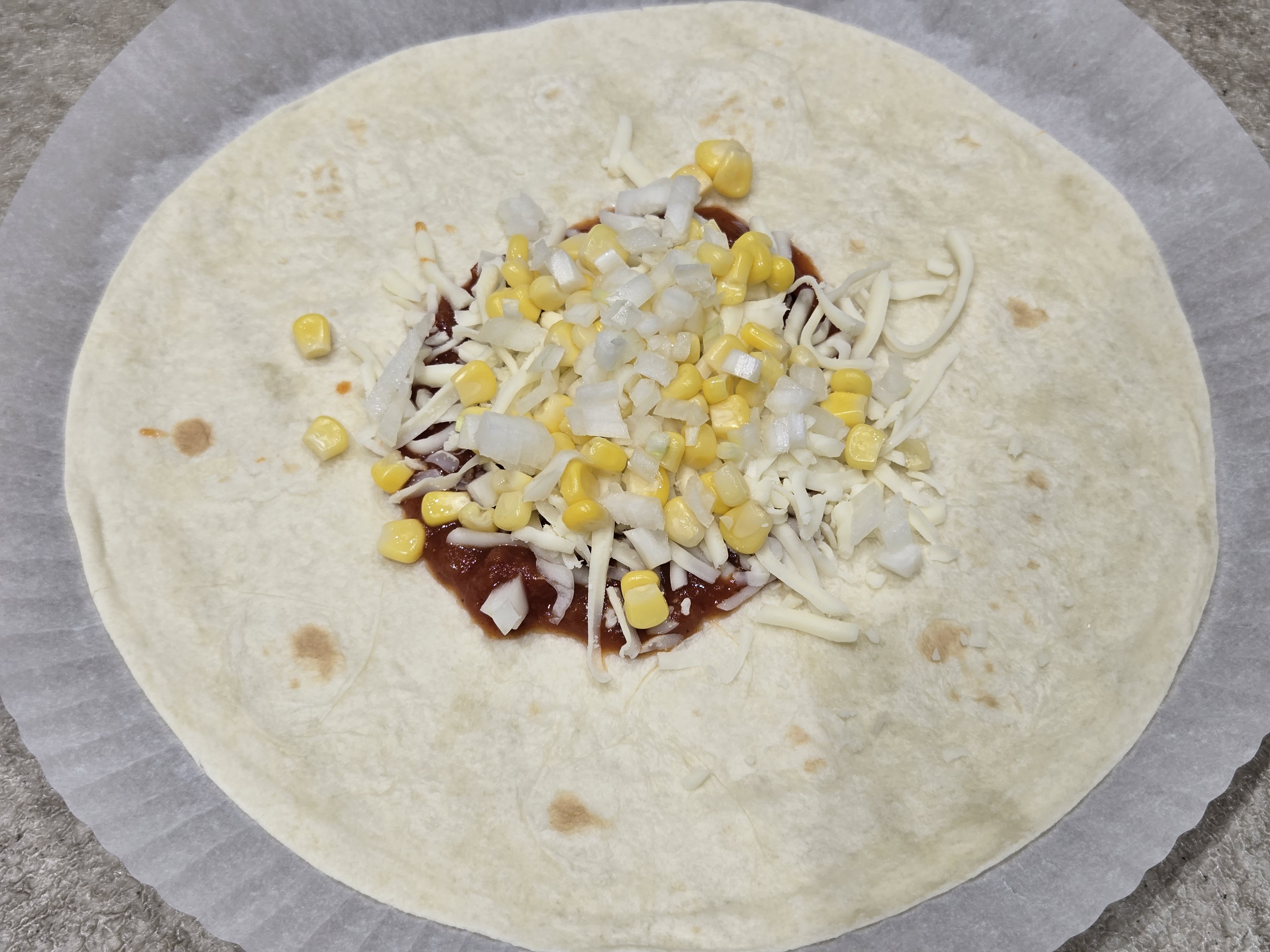 또띠아 한 장을 펼치고,