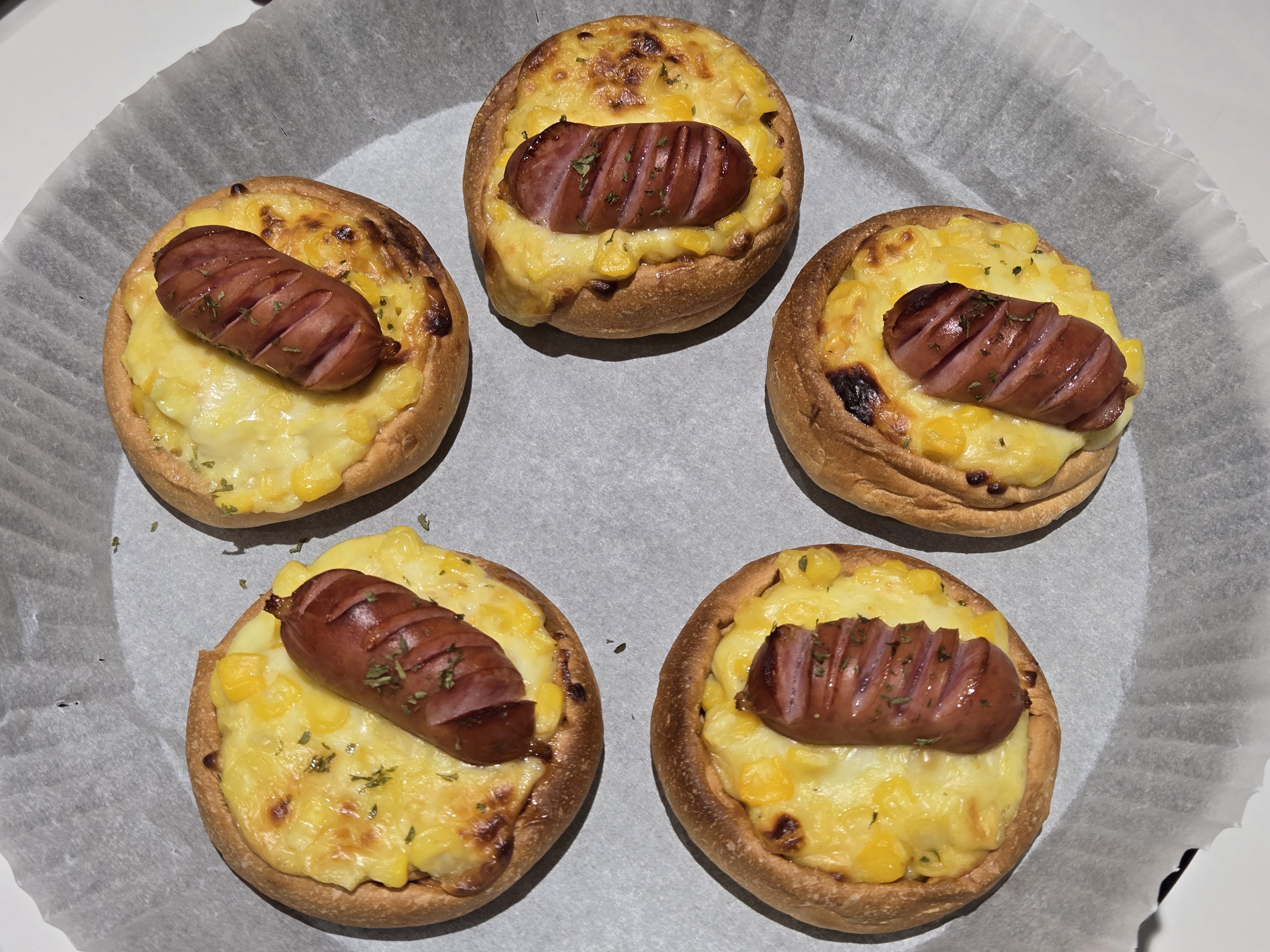 그리고 비엔나 소시지를 올려서 구워내면,