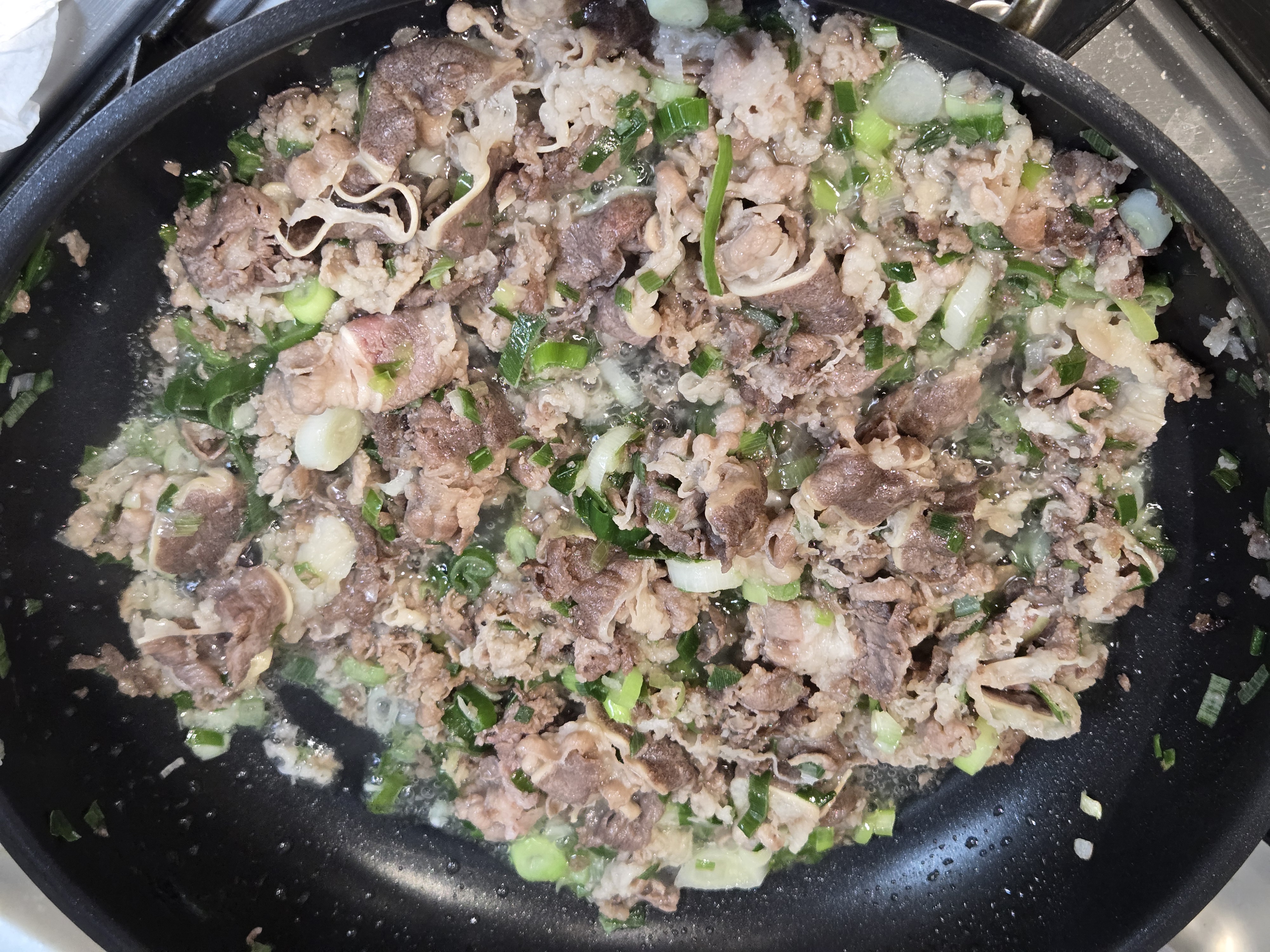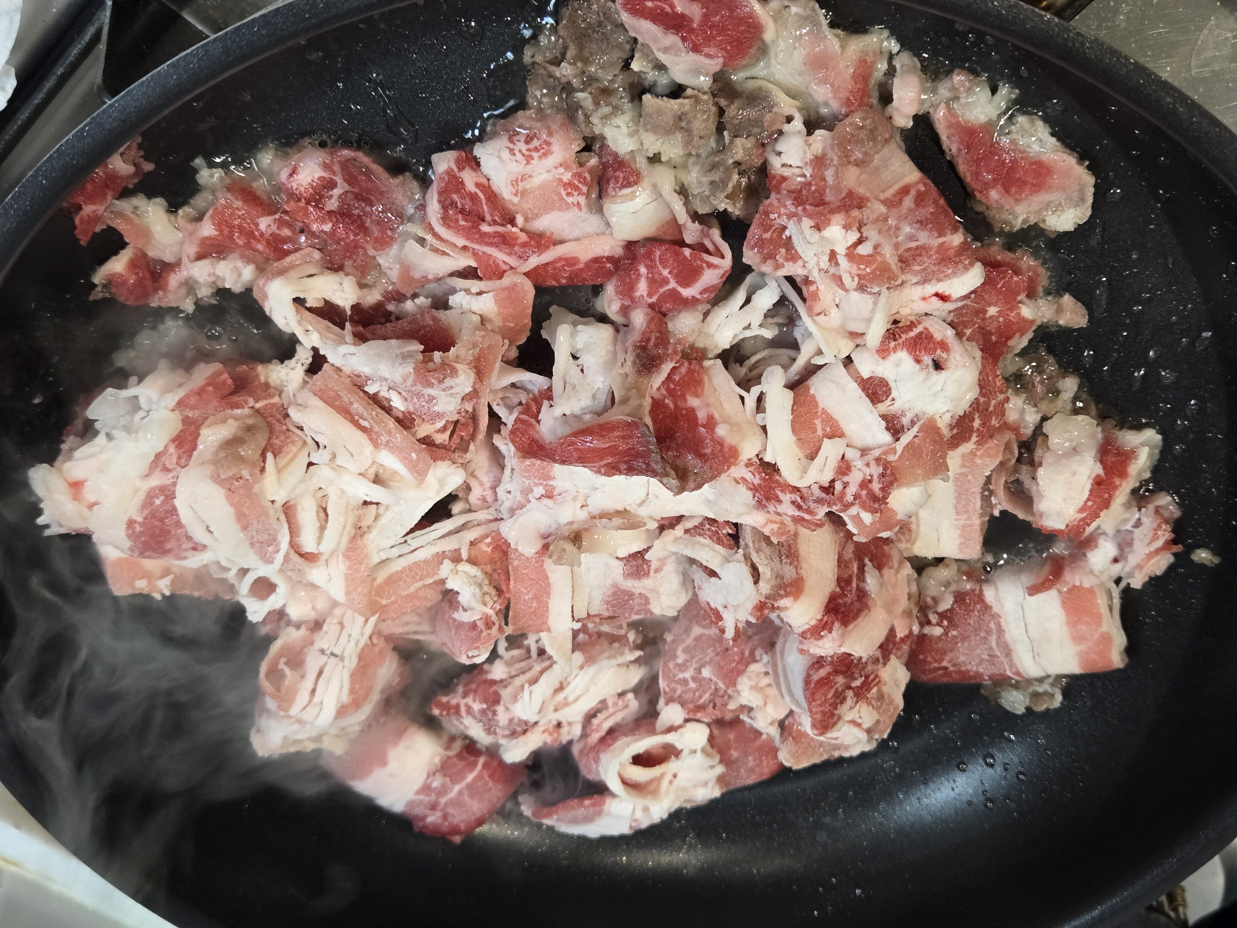 달궈진 팬에 우삼겹을 넣어 볶아주세요
