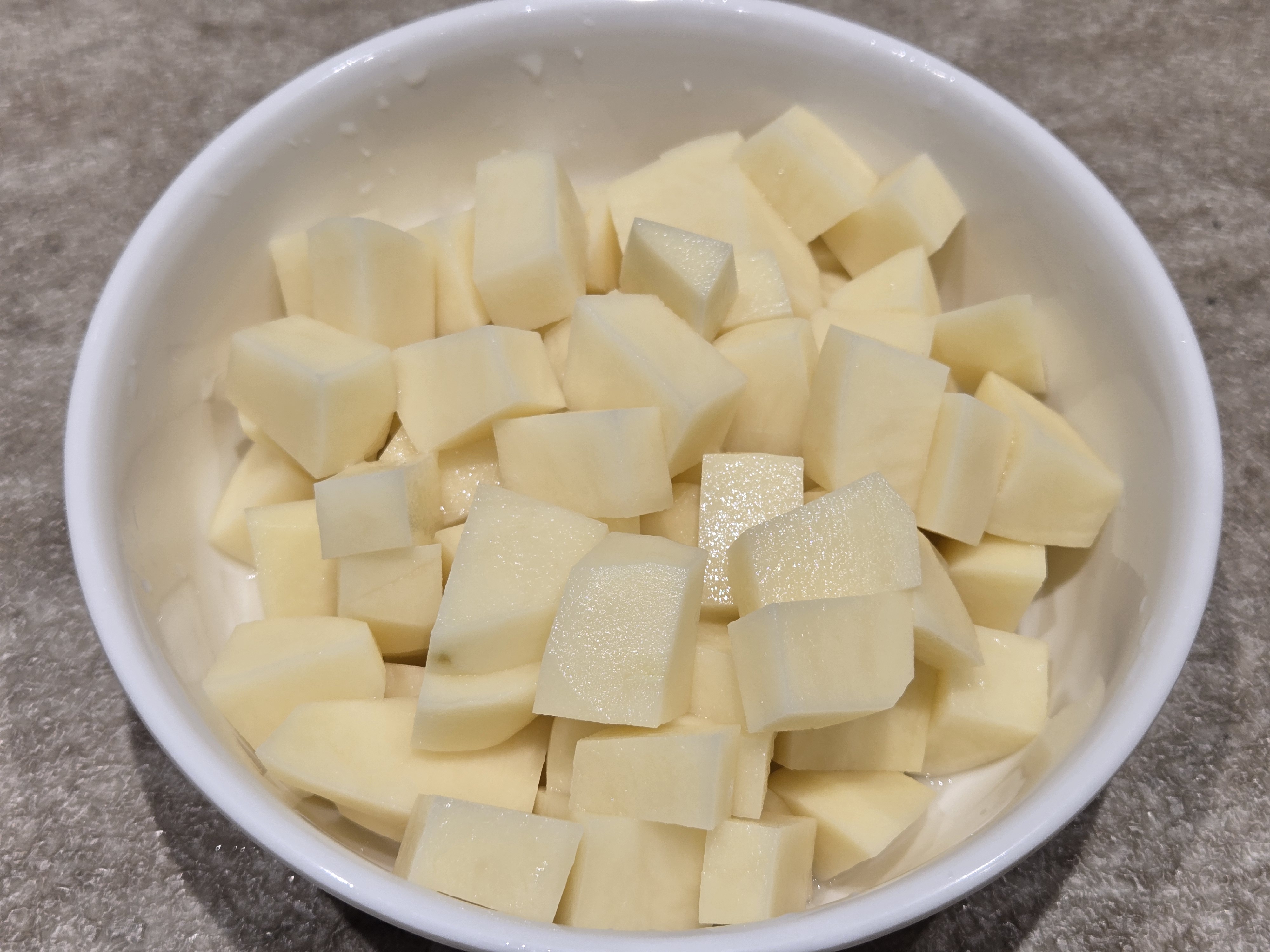 감자 2개를 깍뚝 썰어