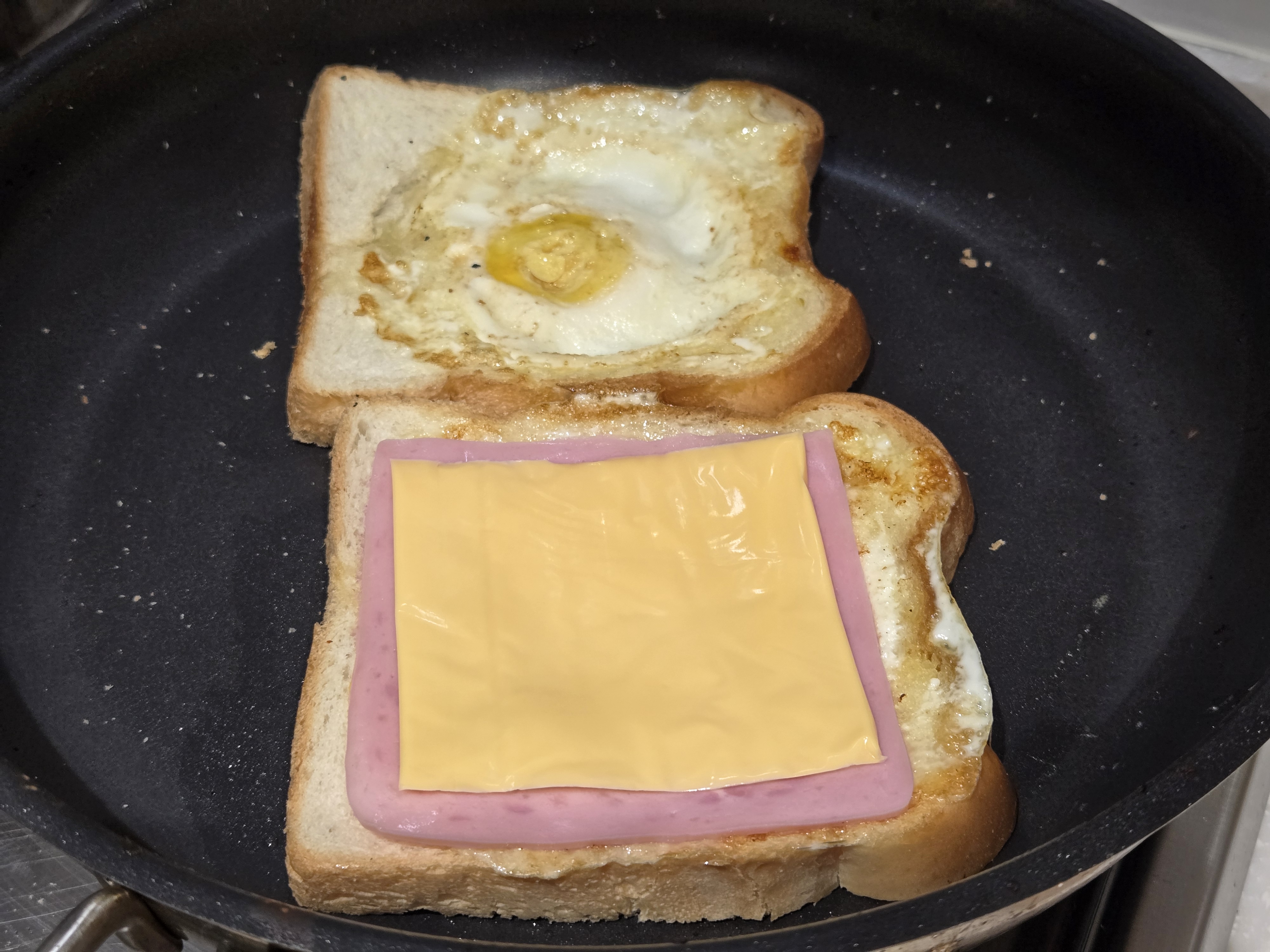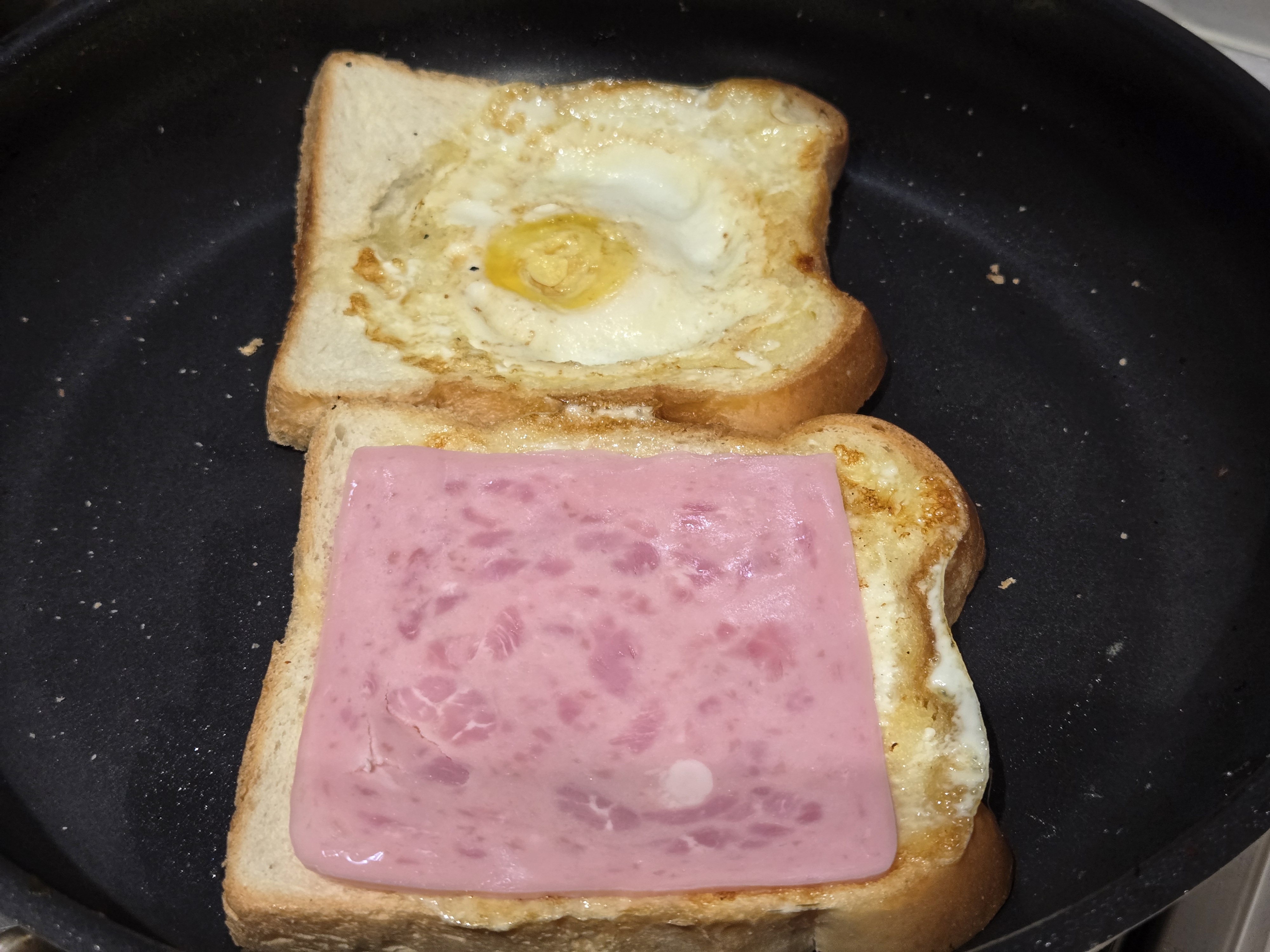 햄 한 장을 올려준 뒤,