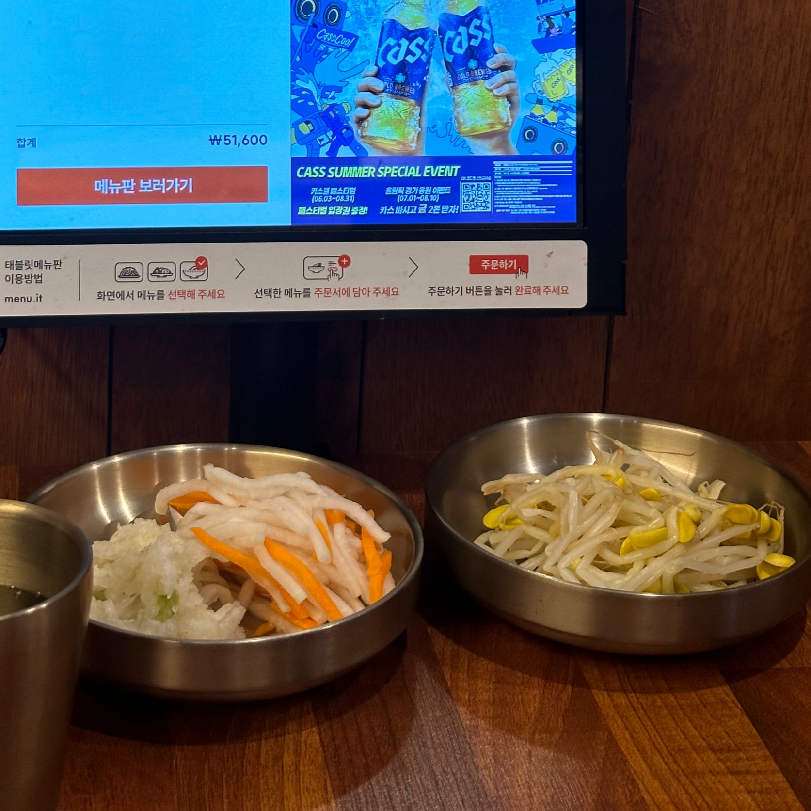 주문 후 밑반찬이 세팅되었는데