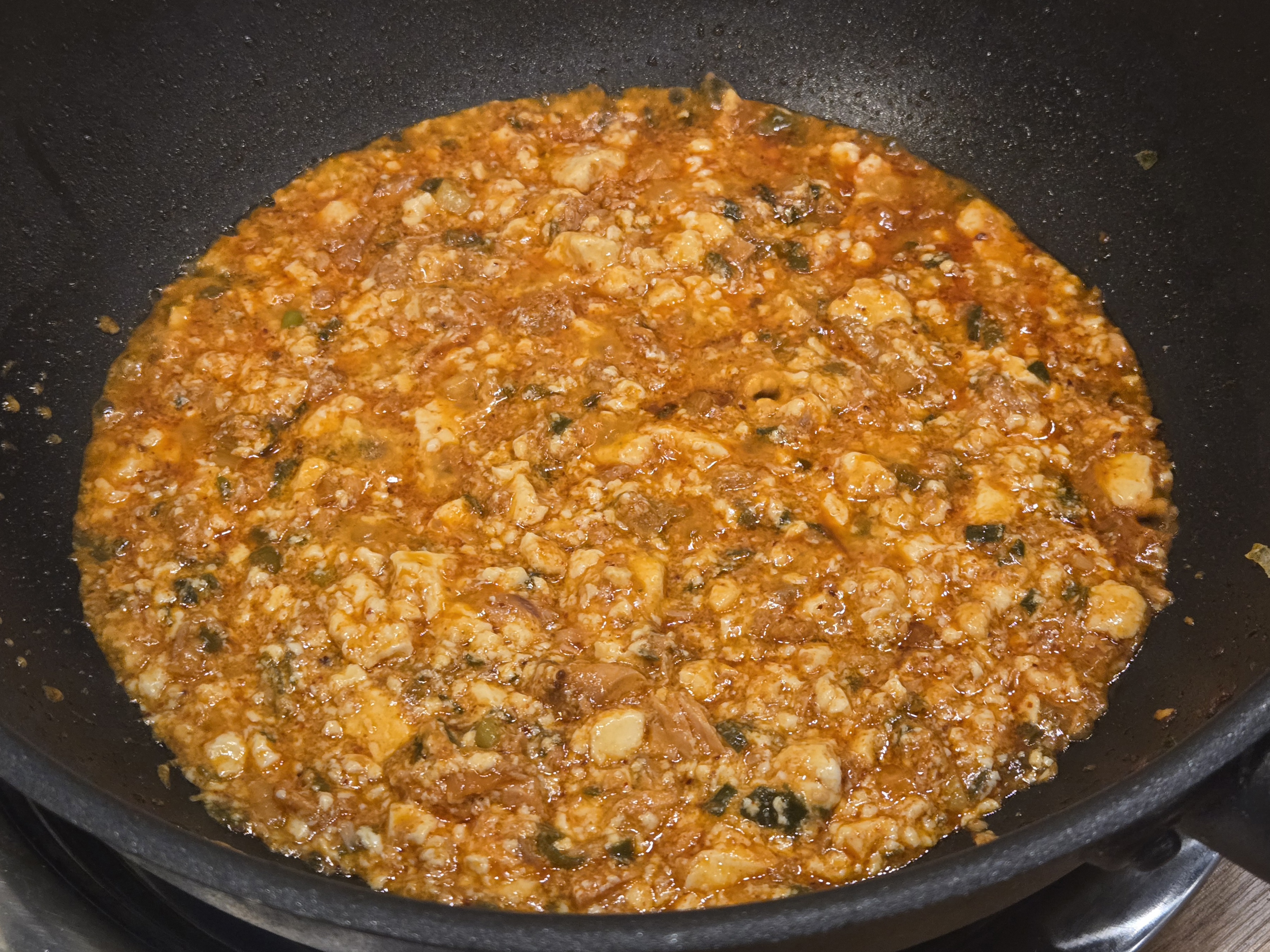 고추기름이 나오면 순두부 한 봉을 넣고,