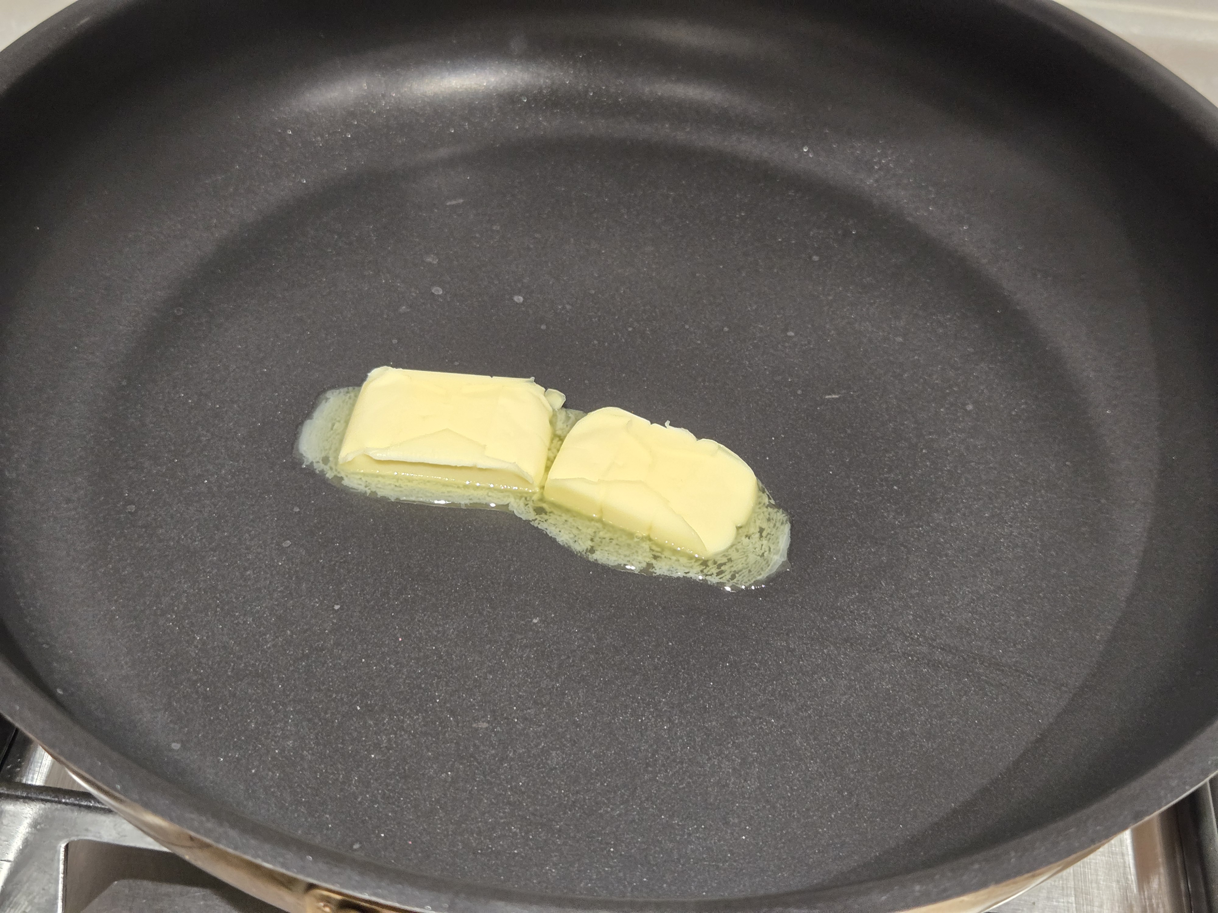 팬에 버터 10g을 넣고 약불에서 녹여주세요
