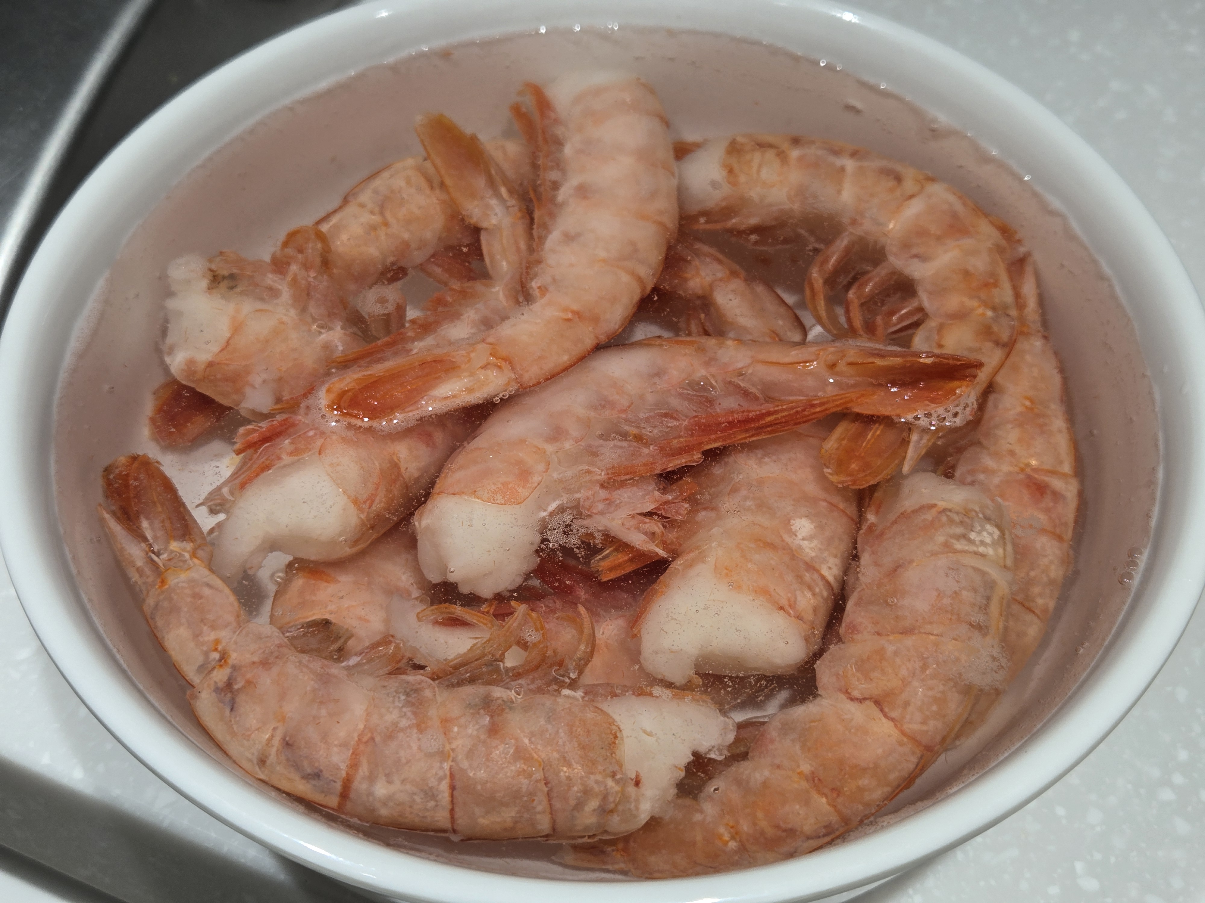 물기 제거 후 새우를 반으로 갈라 펼쳐줍니다