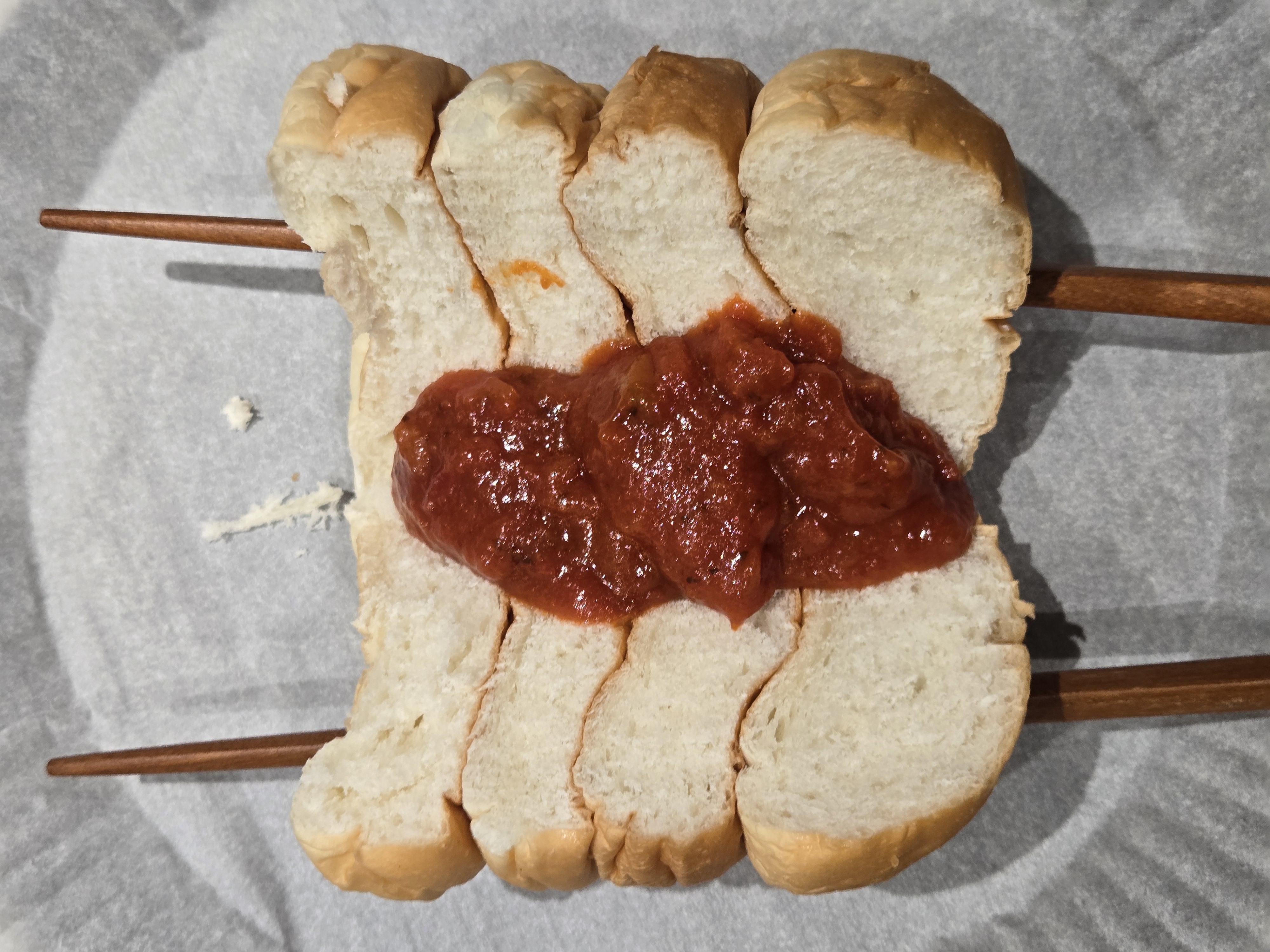 모닝빵 4개를 나란히 놓고,