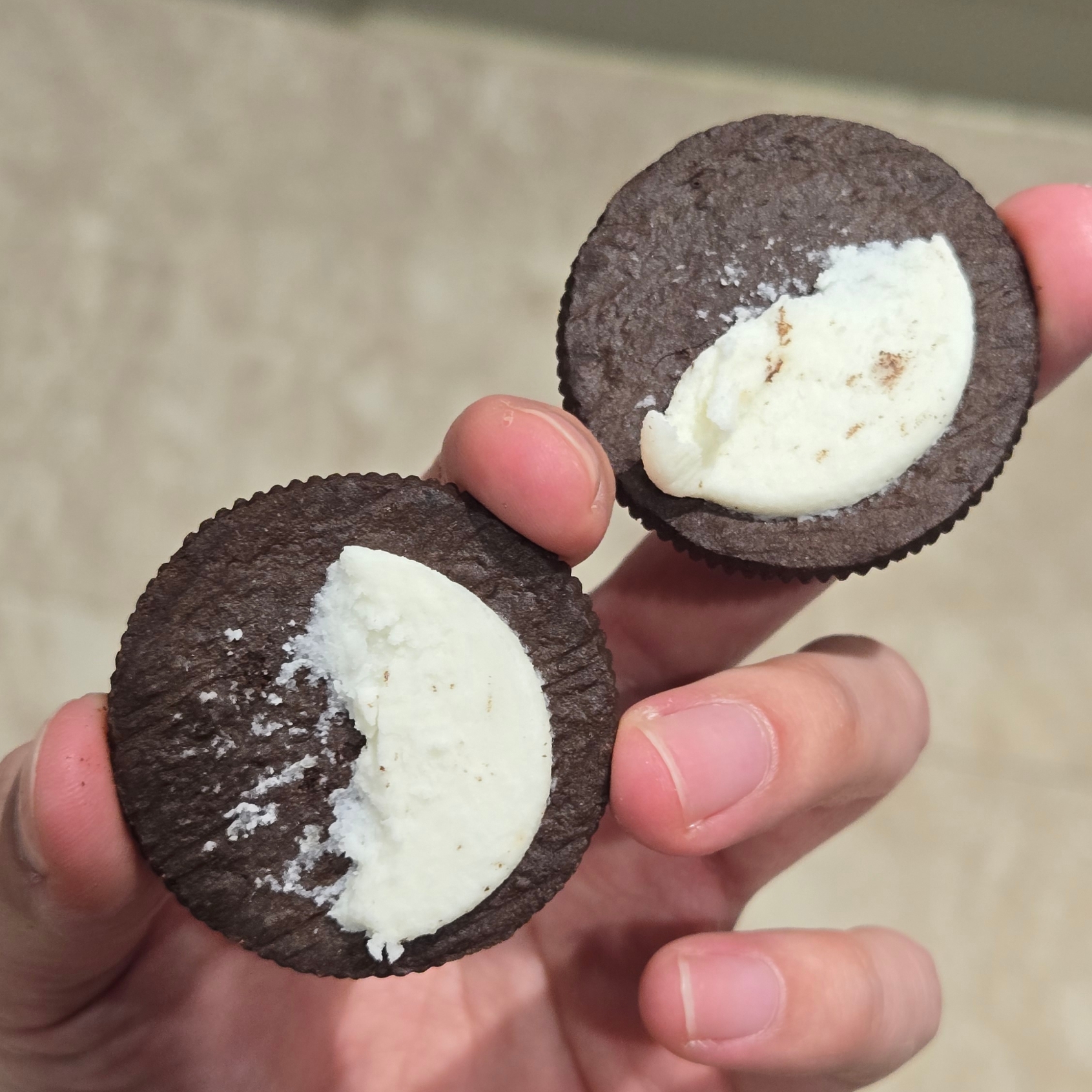 이번에는 오레오를 반으로 갈라서