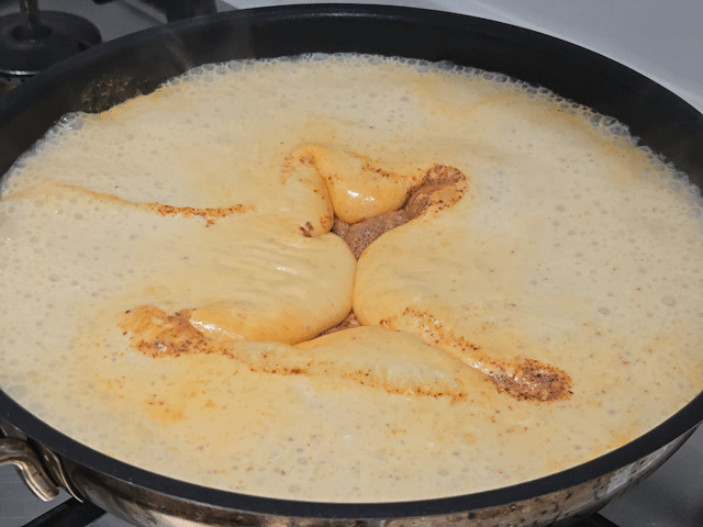 끓고 있는 우유에 만들어둔 양념장을 넣고